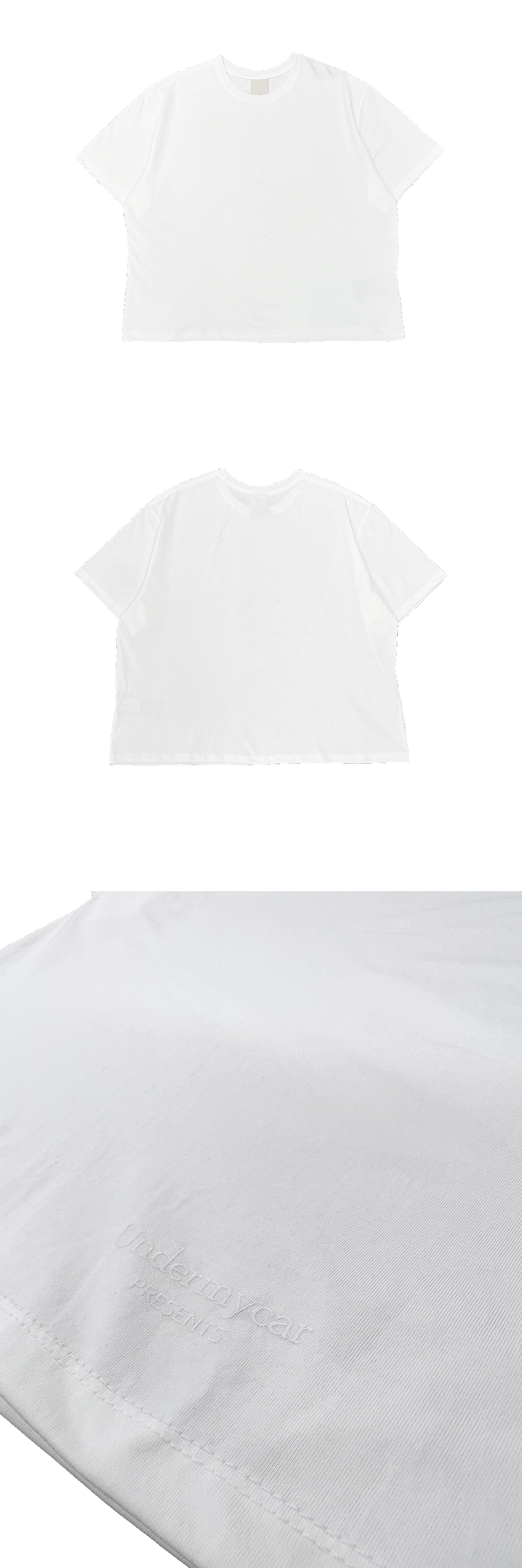 언더마이카 무.129 오리지널 로고 와이드 크롭 티셔츠 화이트