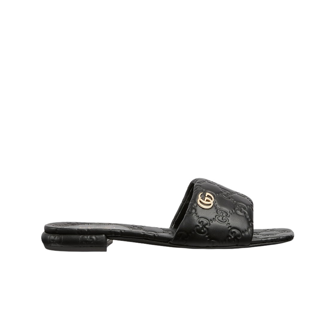 (W) 구찌 더블 G 슬라이드 샌들 블랙 레더