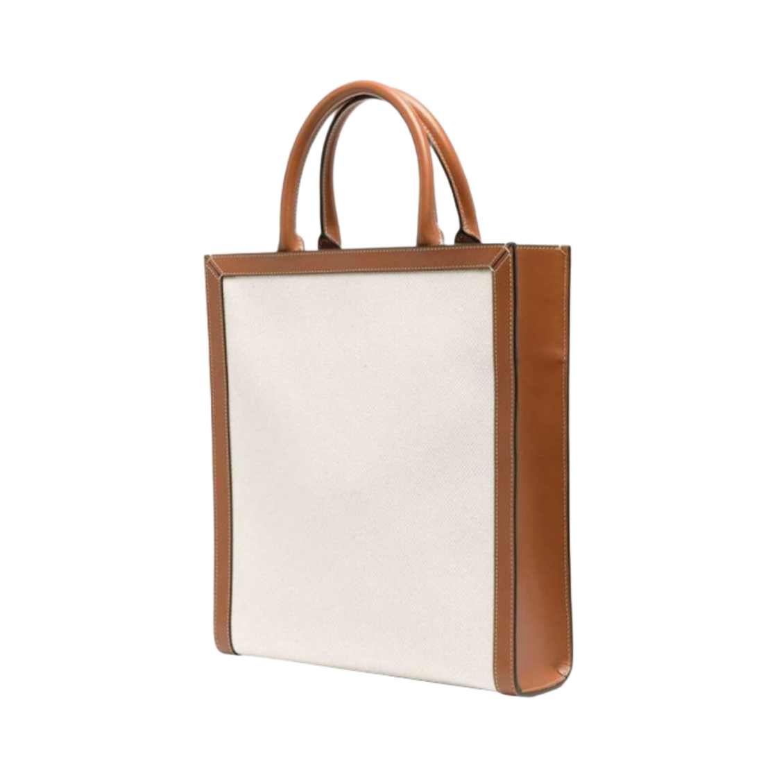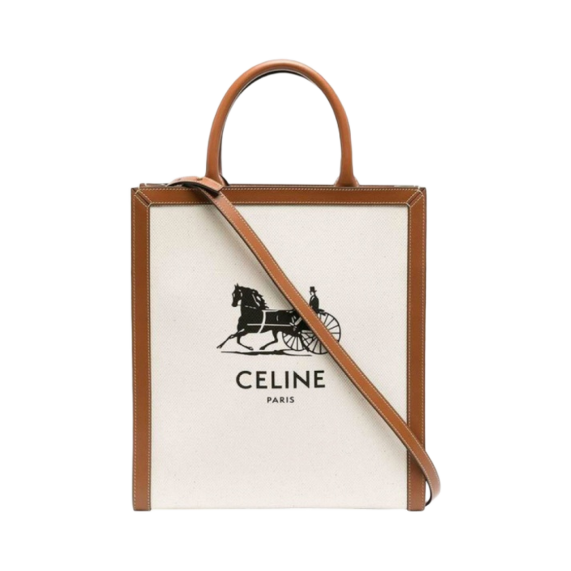 셀린느 설키 프린트 텍스타일 & 카프스킨 스몰 버티컬 카바스 내츄럴 탄