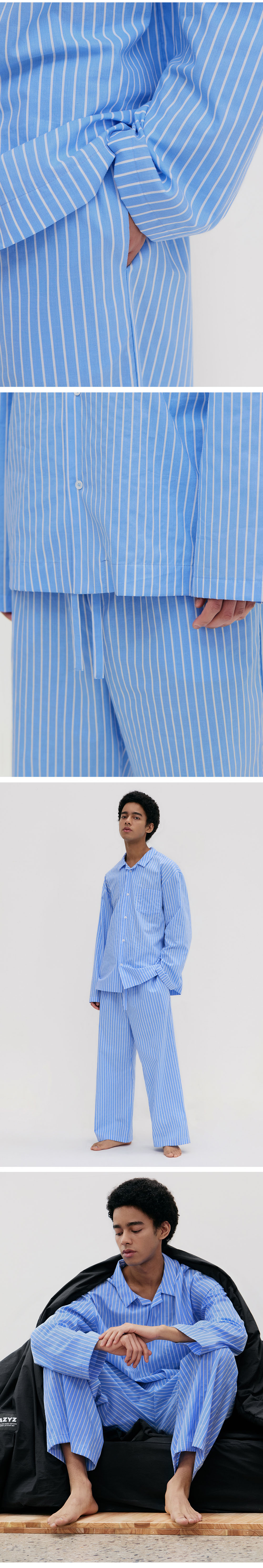 레이지지 스테이 파자마 롱 셔츠 팬츠 세트 라이트 블루