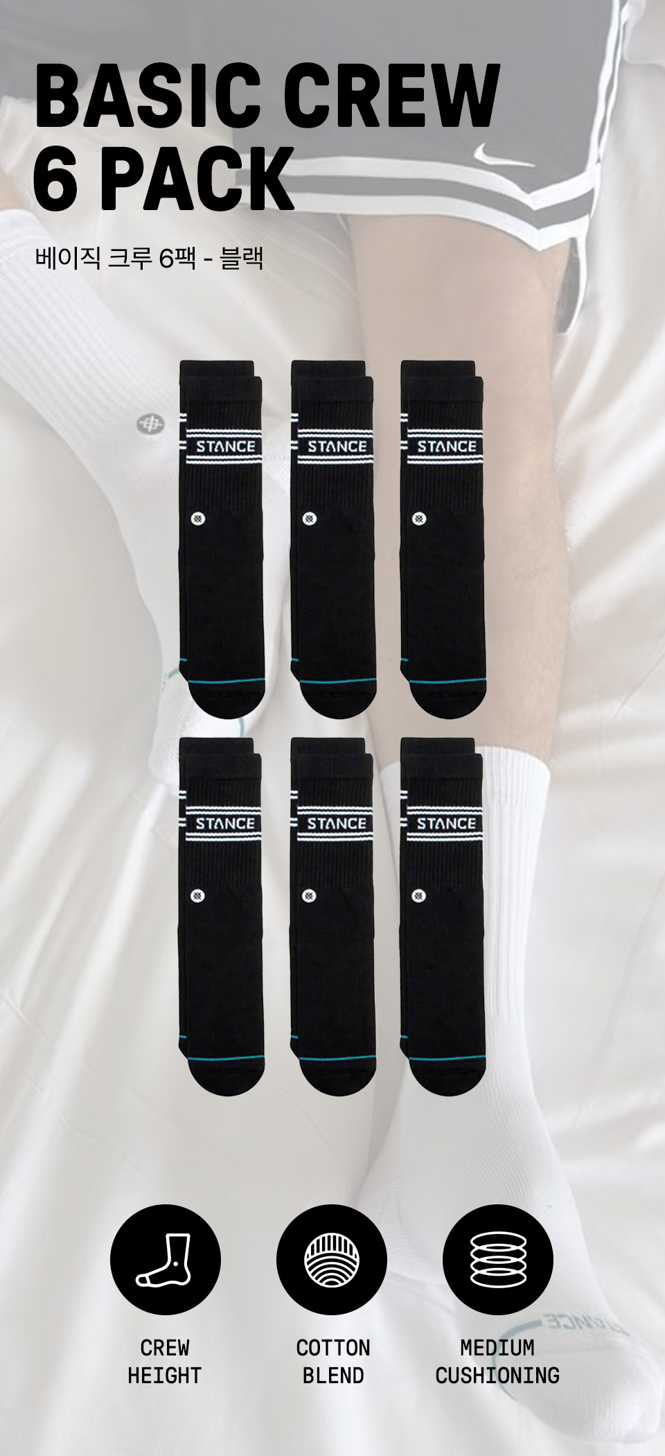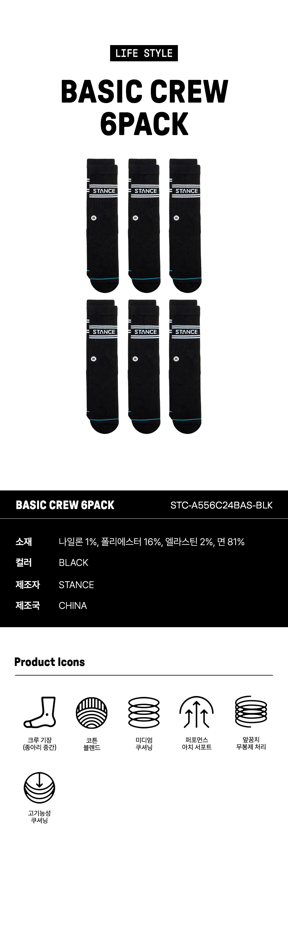 스탠스 베이직 6팩 크루 블랙