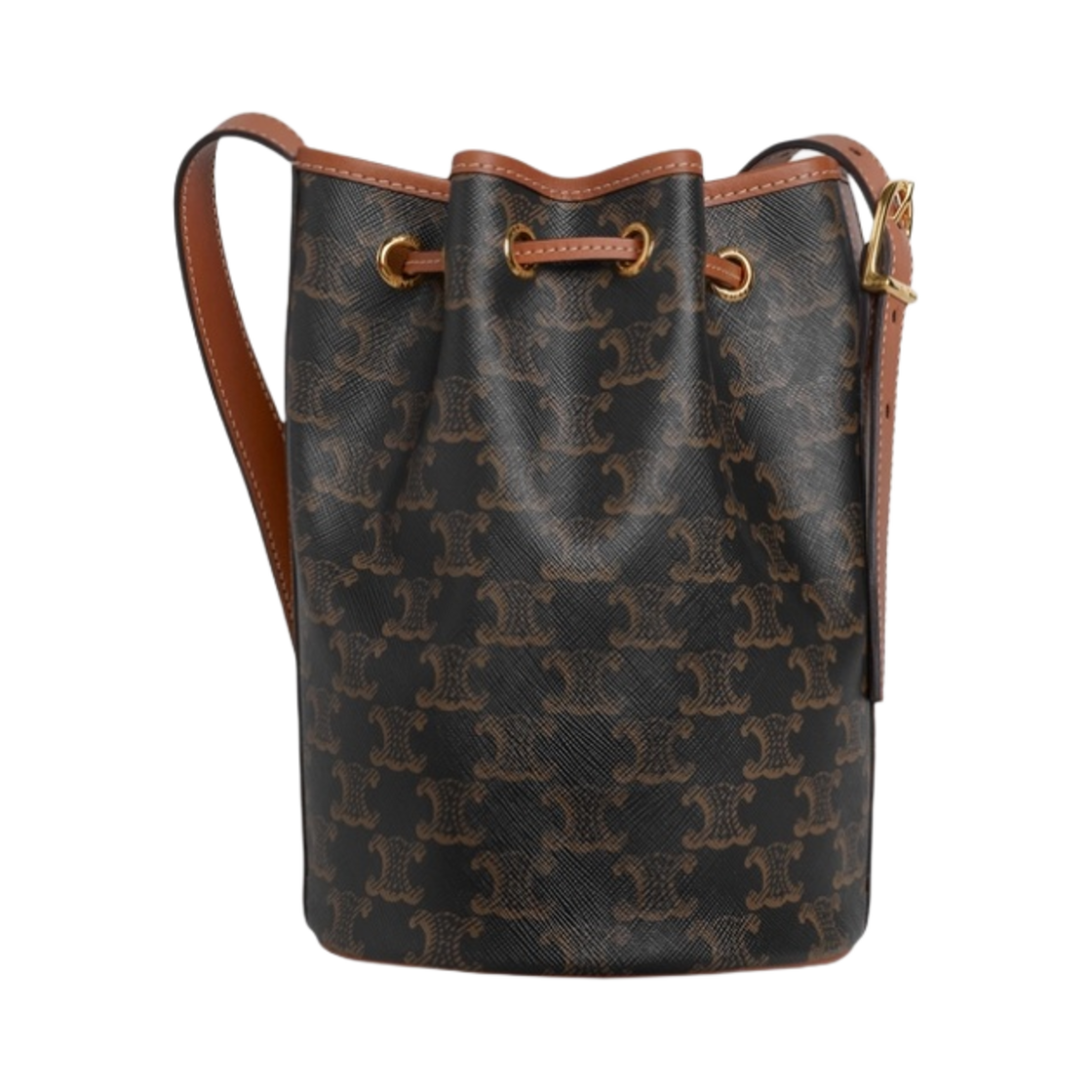 셀린느 트리옹프 캔버스 & 카프스킨 스몰 드로우스트링백 탄