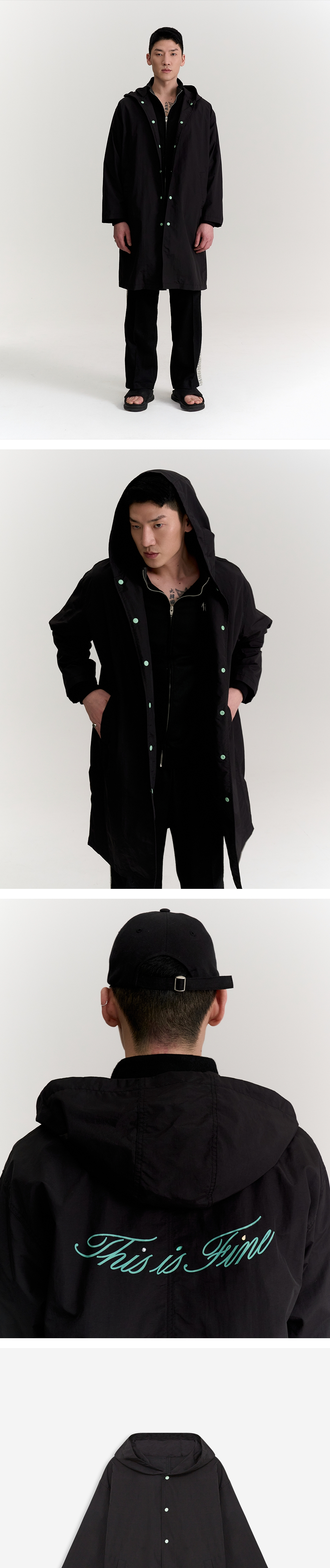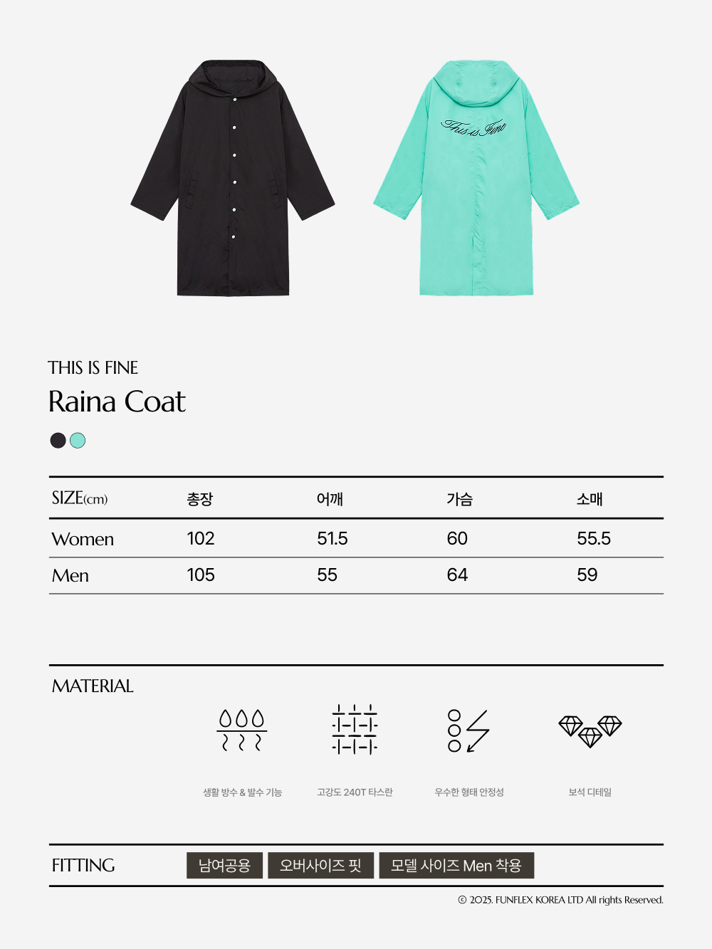날씨가 흐려도, 빛나는 당신을 가릴 수 없을 거예요. ✓ 세미 A라인 실루엣, 스탠다드 핏 ✓ 고강도 나일론 240T 타스란 + PU 코팅으로 완성된 프리미엄 방수 원단 ✓ 유연하고 매트한 텍스처에 뛰어난 생활 방수, 발수 기능 ✓ 일본산 Sun Grip 스냅과 30수 3합실로 완성도 높은 마감