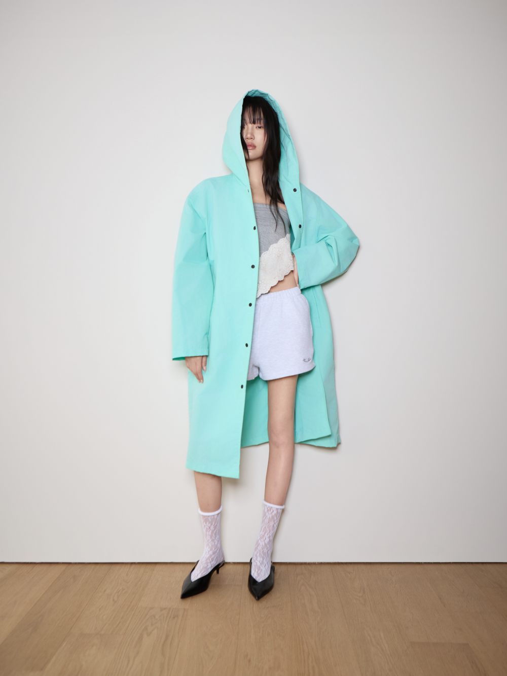 ✓ 세미 A 라인 실루엣, 스탠다드 핏 ✓ 고강도 나일론 240T 타스란 + PU 코팅으로 완성된 프리미엄 방수 원단 ✓ 유연하고 매트한 텍스처에 뛰어난 생활 방수, 발수 기능 ✓ 일본산 Sun Grip 스냅과 30수 3합실로 완성도 높은 마감