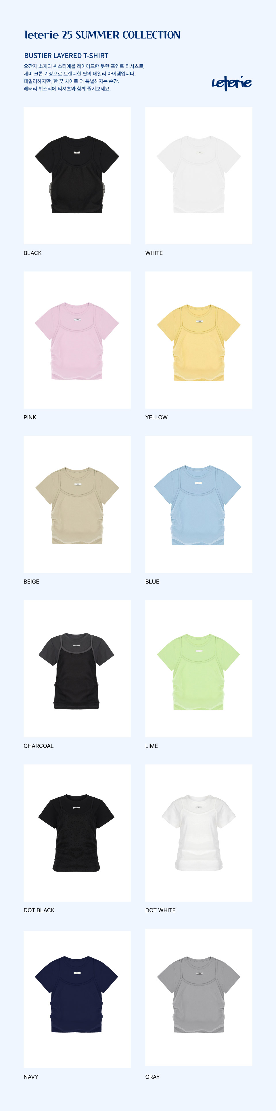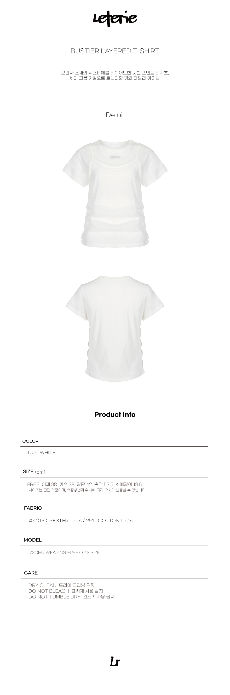 레터리 뷔스티에 레이어드 티셔츠 도트 화이트