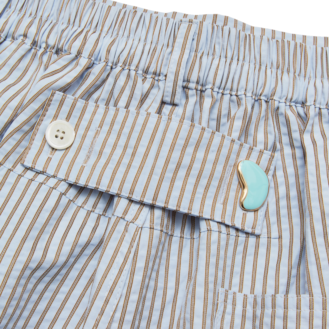 햇살 따스한 휴양지의 오후, 파자마도 당신답게 입고 싶을 때. ✓ 카브라 쇼츠 스타일의 파자마 팬츠, 스탠다드 핏 ✓ 허리 반 밴딩으로 편안한 착용감 ✓ 가볍고 통기성 좋은 조직감, 일상과 홈웨어 모두에 적합