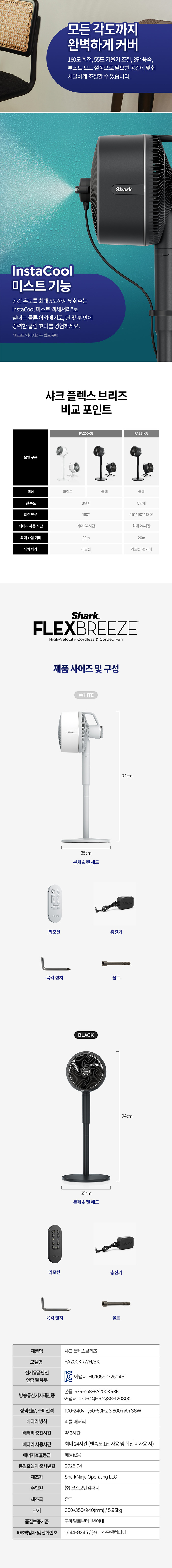 [샤크닌자] SHARK 올인원 무선 선풍기 플렉스브리즈 FA200KR 블랙