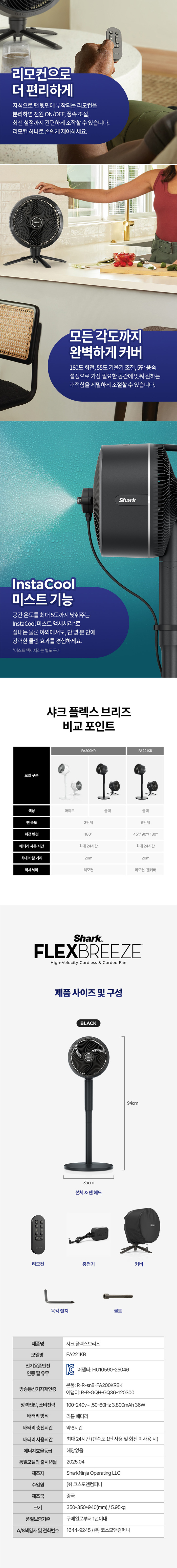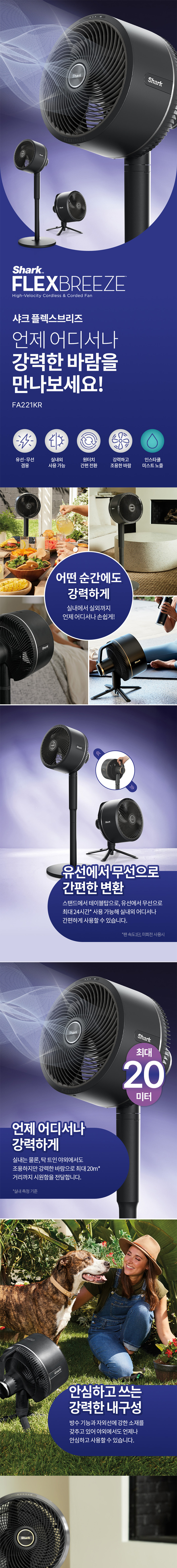 [샤크닌자] SHARK 유무선 2in1 저소음 선풍기 플렉스브리즈 FA221KR