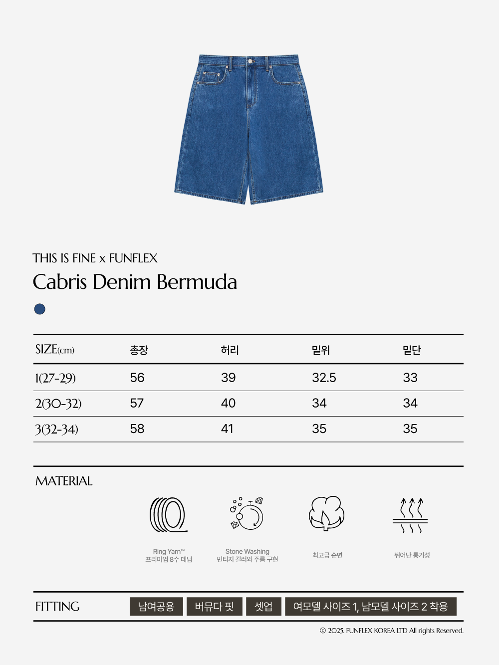 여름을 입는 가장 정제된 방법. 바람처럼 가볍고, 시선은 머무는 데님이에요. ✓ 버뮤다 핏, 남여공용 ✓ 링얀(Ring Yarn™) 프리미엄 8수 데님, 부드럽고 균일한 조직감과 뛰어난 통기성 ✓ 스톤워싱 가공으로 빈티지한 컬러와 자연스러운 주름 연출