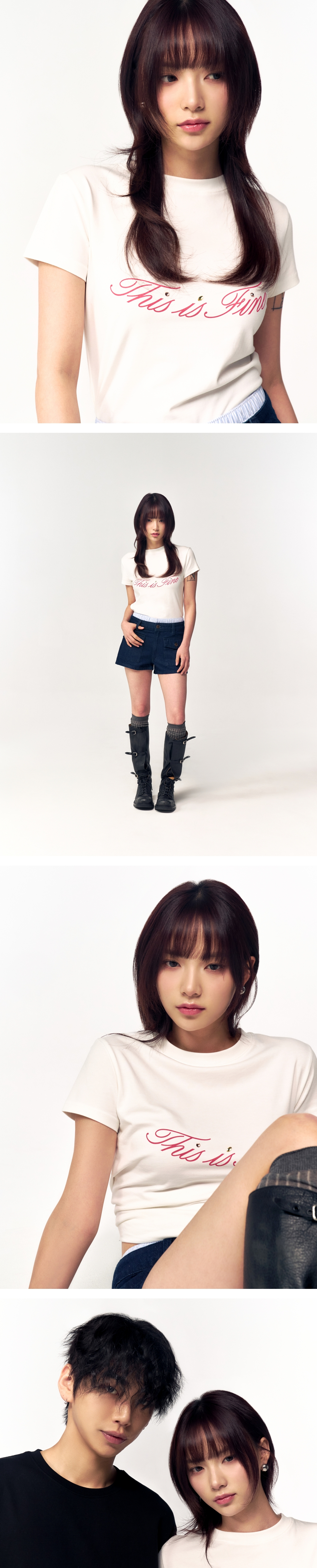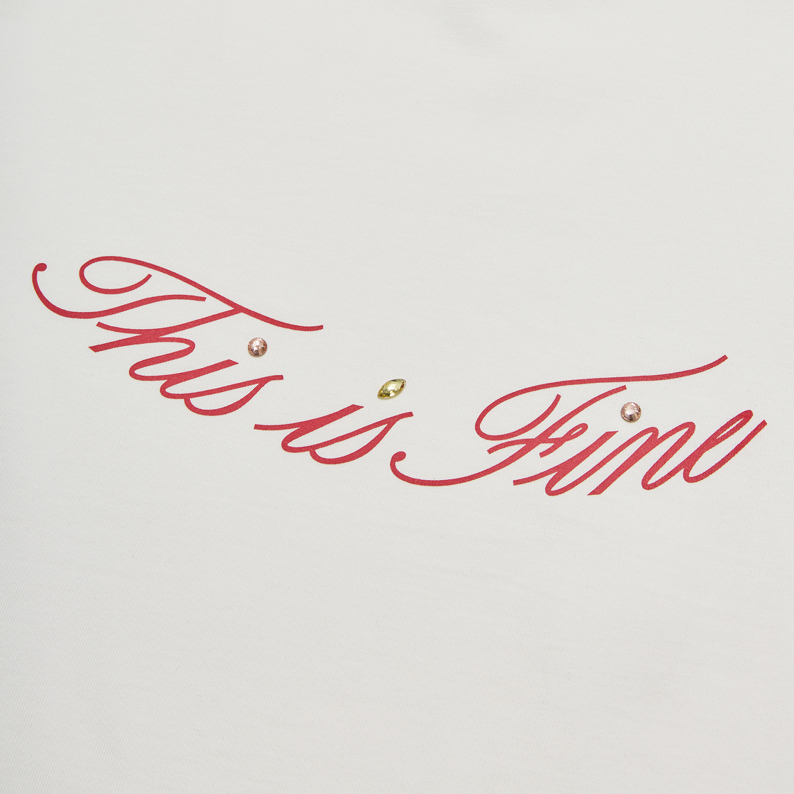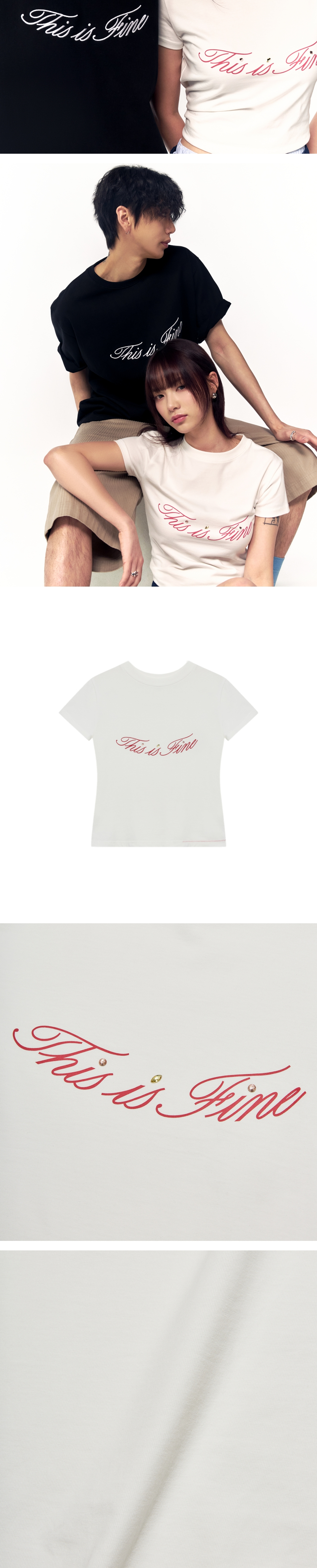 바디를 따라 부드럽게 흐르는 실루엣, 살짝 드러나는 허리선이 그대의 특별한 일상을 완성합니다. ✓ 허리 라인이 살아있는 슬림 핏 ✓ 부드러운 감촉과 밀도감이 살아있는 프리미엄 실켓 저지 ✓ 보석 디테일이 가미된 THIS IS FINE 로고 프린트