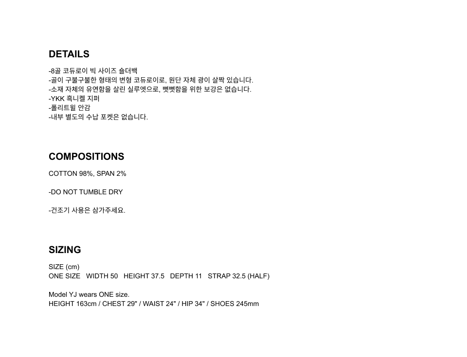 실측 단위는 cm이며, 제품의 단면을 기준으로 측정했습니다.