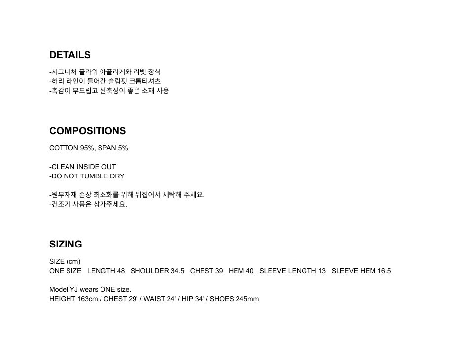 실측 단위는 cm이며, 제품의 단면을 기준으로 측정했습니다.