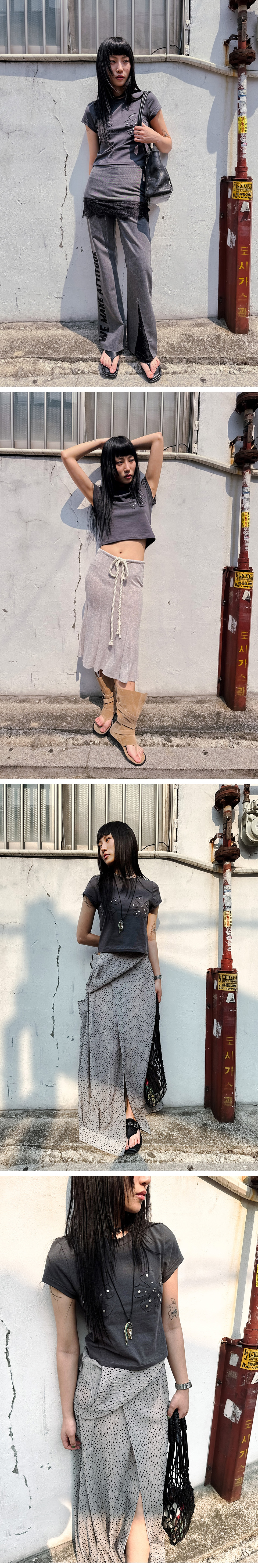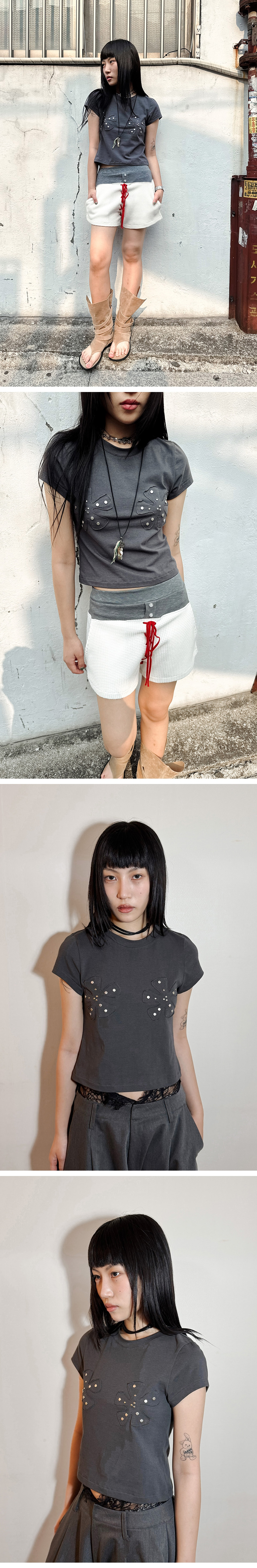 스틸레써디 플라워 쇼트 슬리브 티 그레이