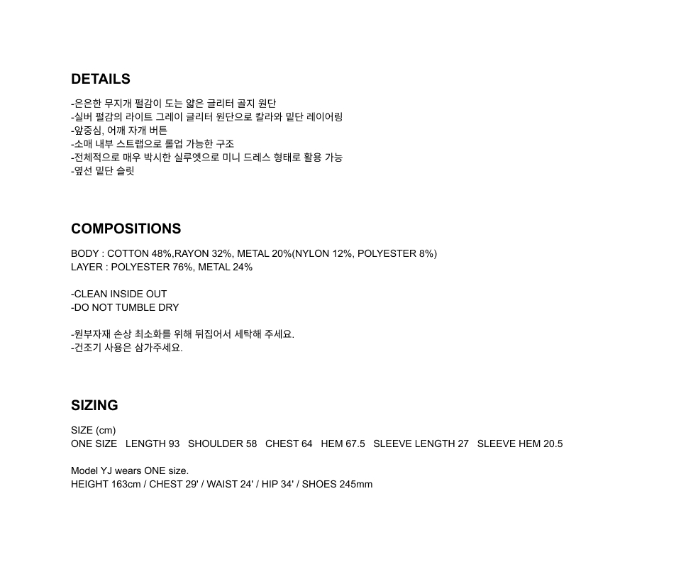 측정 방법에 따라 사이즈에 일부 오차가 있을 수 있습니다.