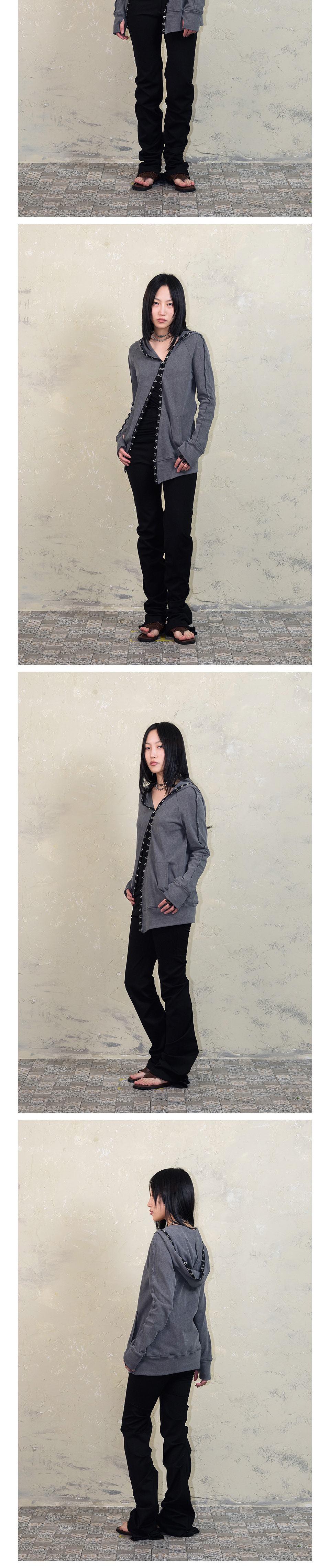 스틸레써디 다이애그널 훅 앤 아이 래글런 후디 그레이