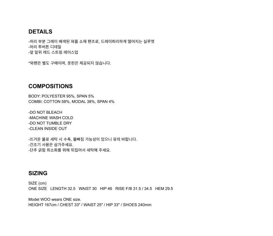 | LENGTH | WAIST | HIP | RISE F/B | HEM |