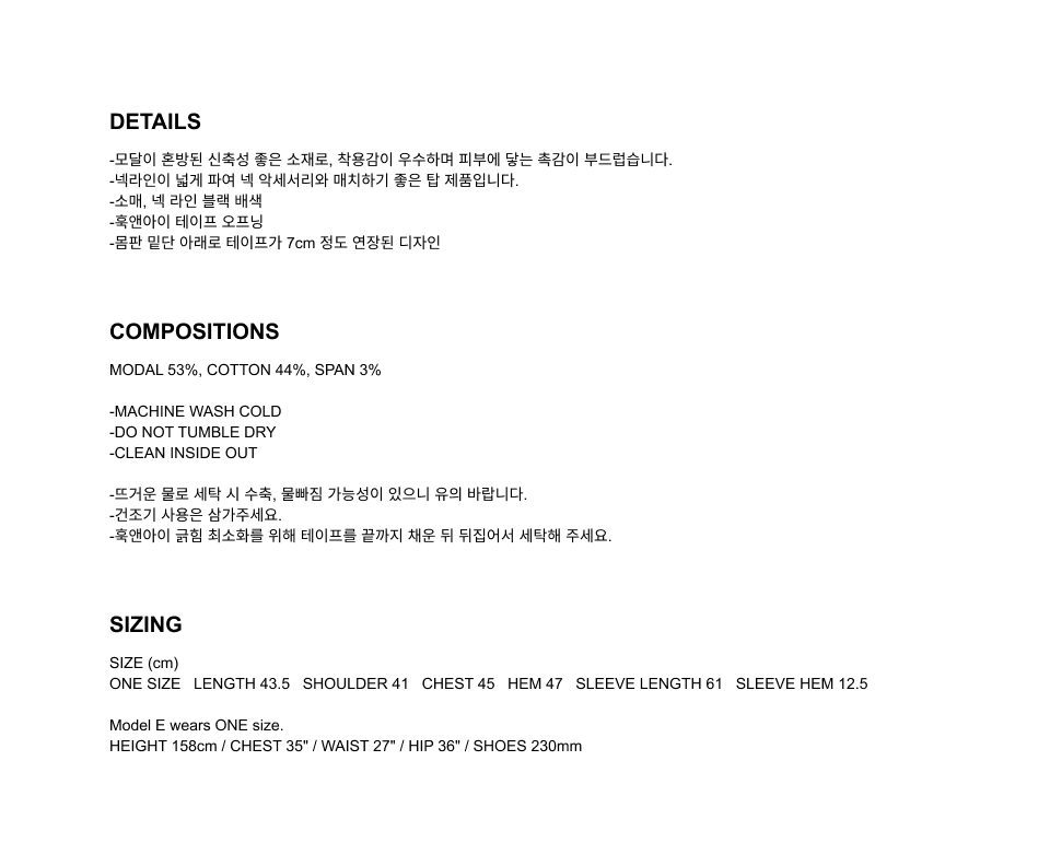 실측 단위는 cm이며, 제품의 단면을 기준으로 측정했습니다.