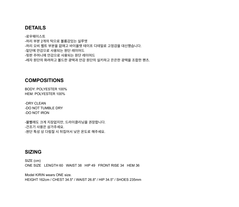| LENGTH | WAIST | HIP | FRONT RISE | HEM |
