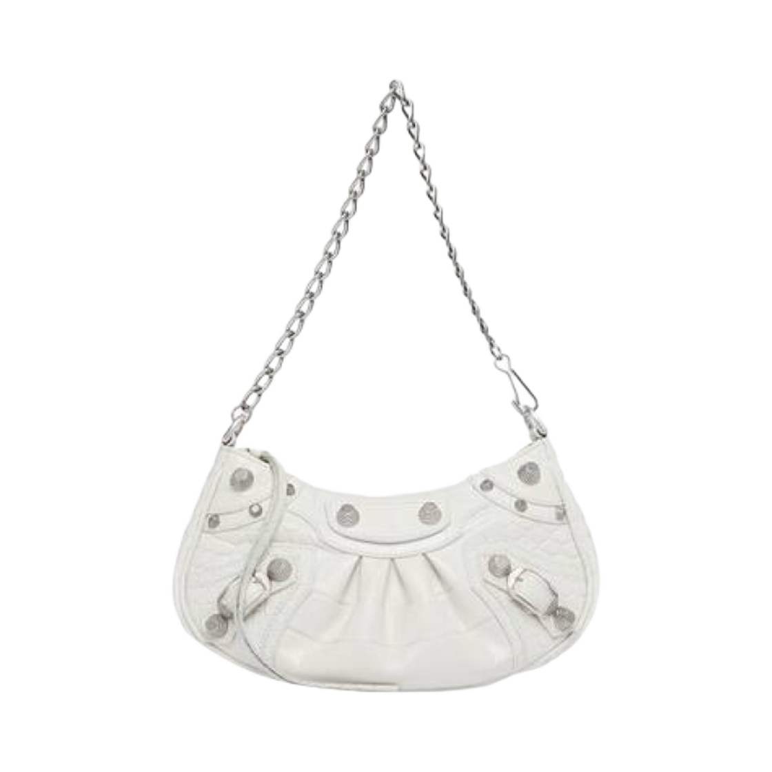 Balenciaga Crocodile Embossed Le Cagole Mini Purse with Chain White