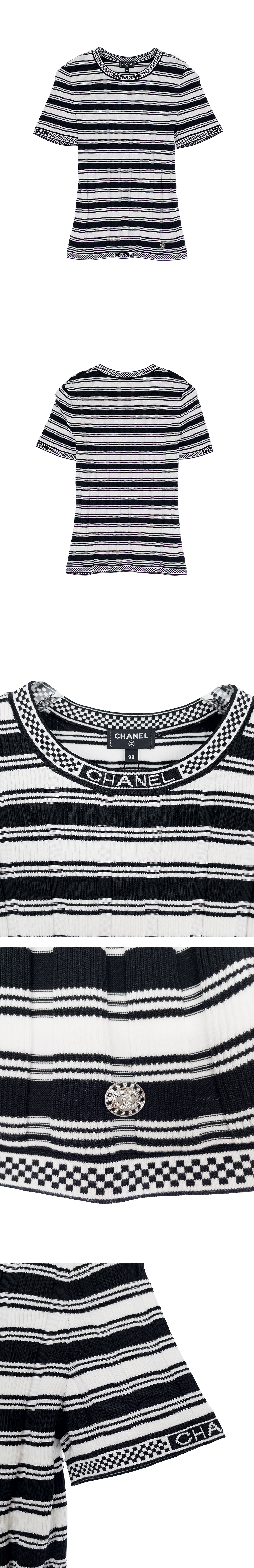 샤넬 23C 스트라이프 숏 슬리브 니트탑 38 블랙/화이트