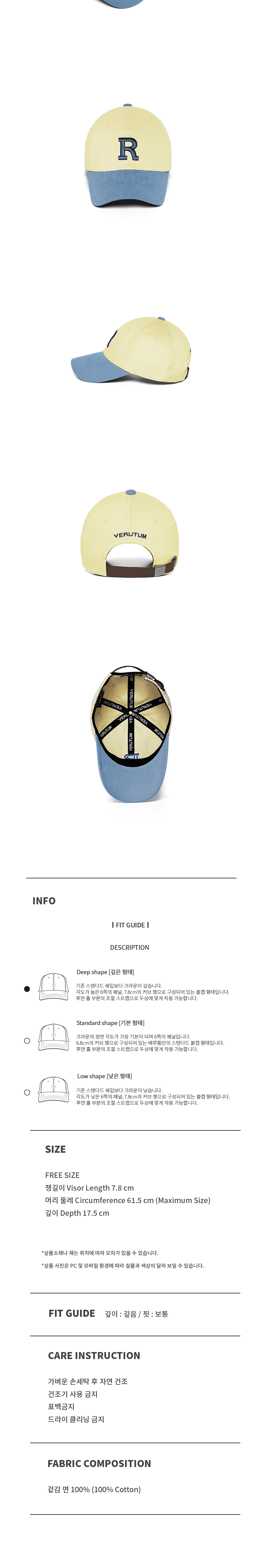 | 챙길이(Visor Length) | 머리 둘레(Circumference) | 깊이(Depth) |
