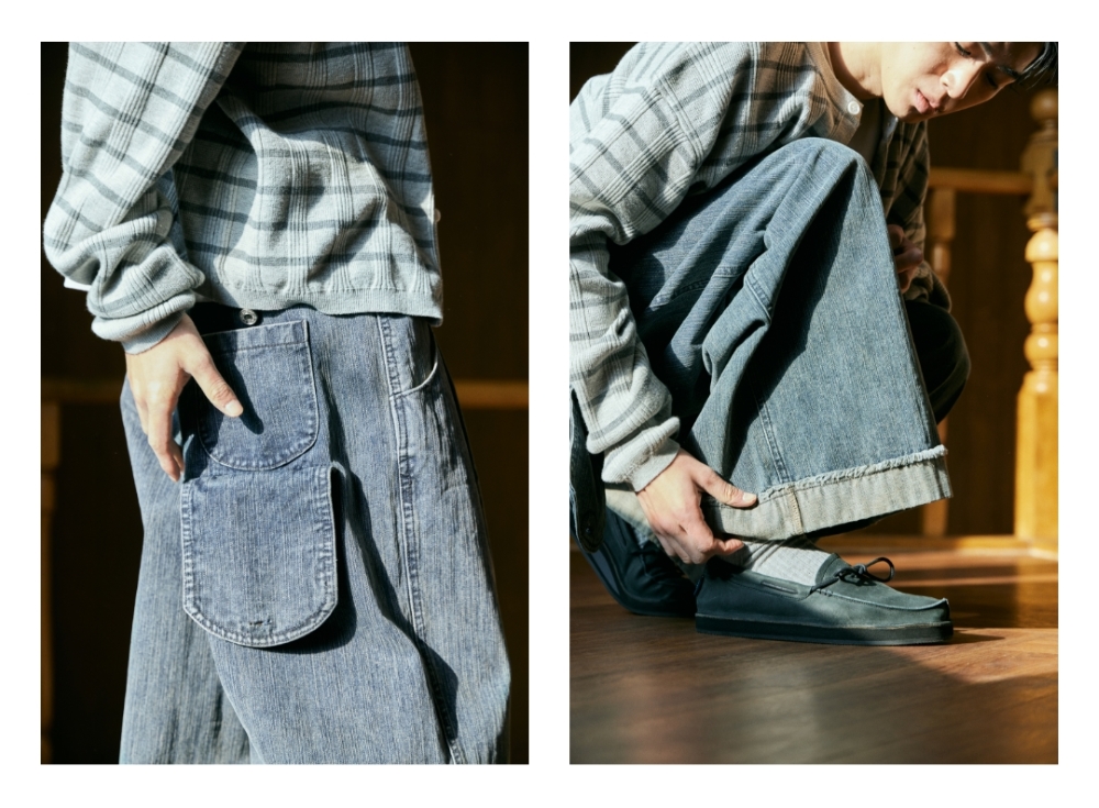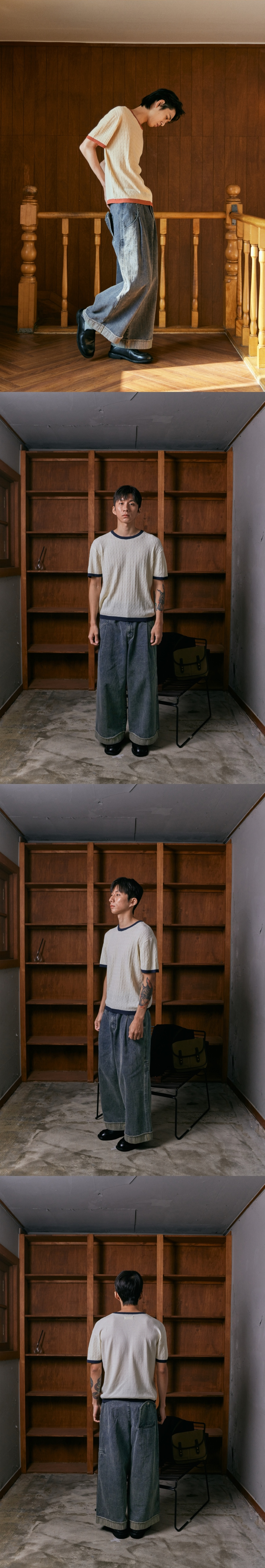 1- 투턱 디테일로 와이드함을 연출 - 바이오워싱 가공으로 구현한 라이트인디고 컬러 - YKK사의 4.5호 금속 지퍼를 사용 r> - 뒤 포켓 덮개 디테일 Shell : 면 85%, 레이온 1%, 폴리에스터 14% 46 : 총장 98, 허리단면 38.5, 엉덩이단면 52.5, 밑위 34.2, 밑단단면 33.5 48 : 총장 100, 허리단면 41, 엉덩이단면 55, 밑위 35, 밑단단면 35 50 : 총장 102, 허리단면 43.5, 엉덩이단면 57.5, 밑위 35.8, 밑단단면 36..5