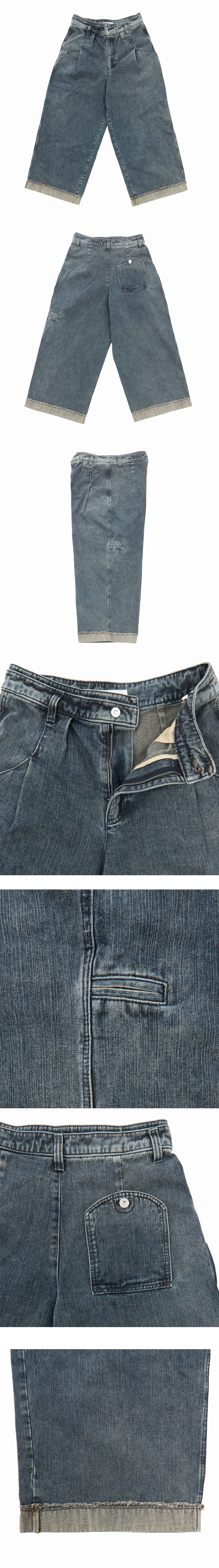 eastserviceshop Double Roll up Denim Pants Light Indigo