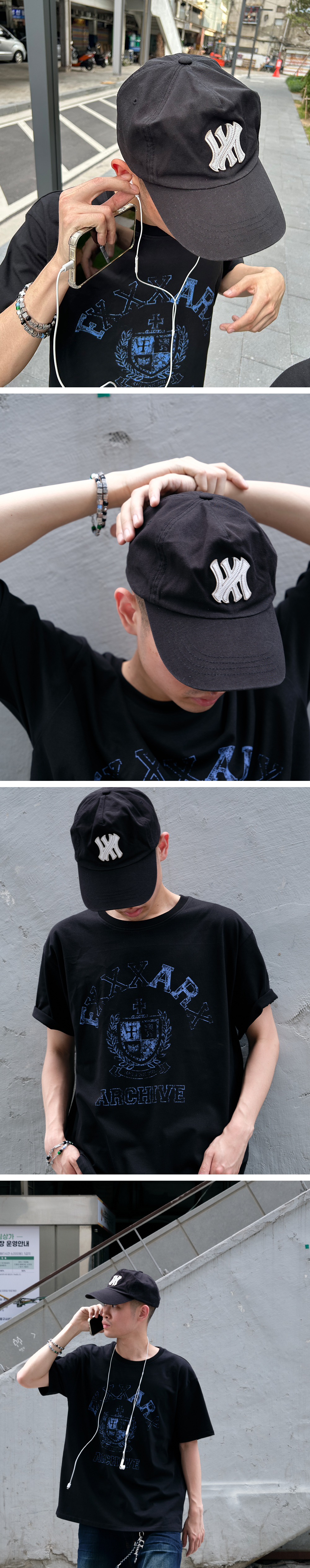 전면 로고 그래픽이 자수로 적용된 볼캡입니다. 기본적인 볼캡 구조를 기준으로 크라운의 깊이와 챙의 비율을 조정하여 얼굴 라인을 크게 벗어나지 않는 너비를 기준으로 잡았습니다. 후면에는 메탈 버클 스트랩으로 착용 위치와 두상 크기에 따라 조절이 가능합니다. * Cotton 100% , Silver-toned Metal Buckle, Made in Korea