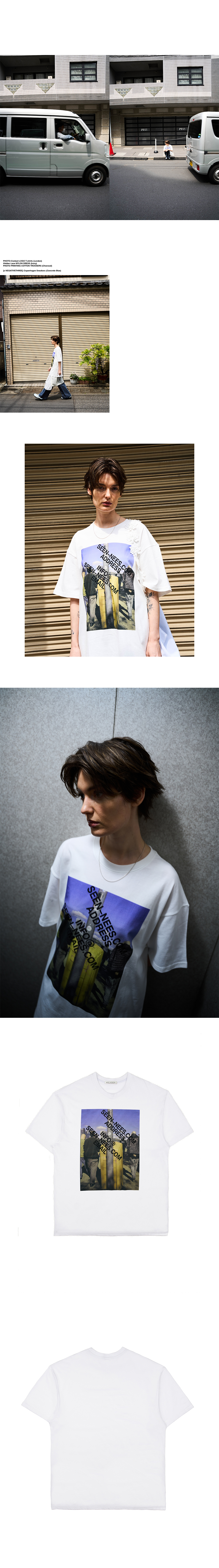 DETAIL Photo digital printing Contact logo printing Semi oversized fit Medium weight cotton jersey fabric 앞면에 디지털 프린팅, 컨택 로고 나염 프린팅 세미 오버사이즈 핏 16수 코튼 원단 COMPOSITION Cotton 100% SIZE MEASUREMENT - Size M : Length 66cm_Chest 54cm_Shoulder 49cm_Sleeve length 20cm - Size L : Length 71.5cm_Chest 56cm_Shoulder 53cm_Sleeve length 21.5cm Made in S o u t h Korea WASHING INSTRUCTIONS Dry clean recommended Hand wash cold Wash separately Do not bleach