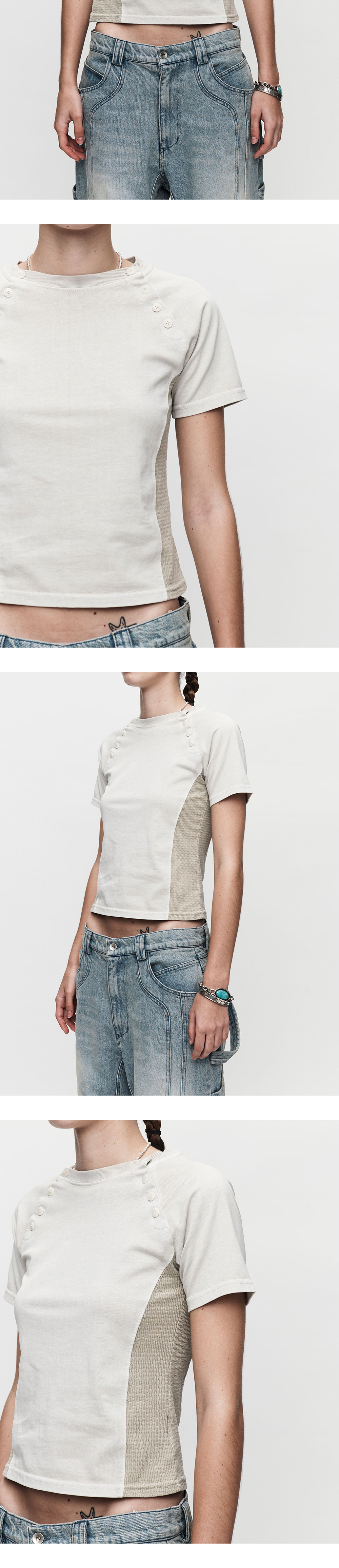 이그노타 코어:12 버튼 숏슬리브 티셔츠 라이트 베이지