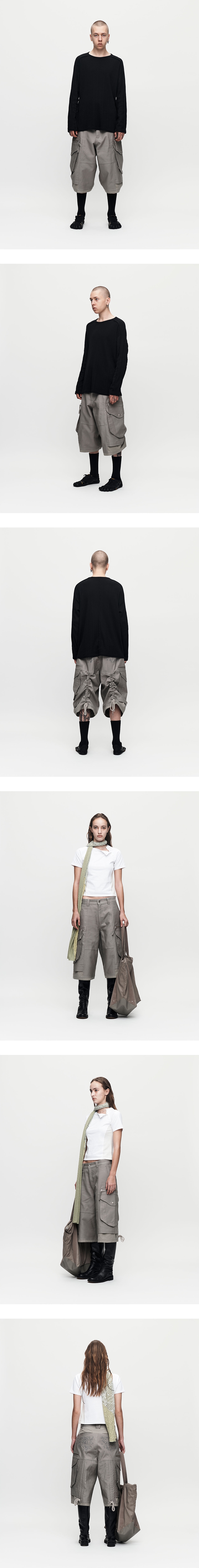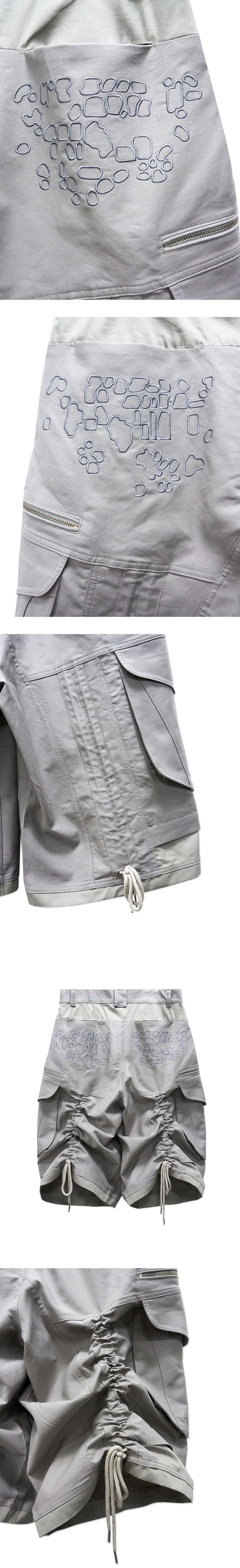 YKK 지퍼 측면 지퍼 포켓 측면 카고 디자인 후면 자수 그래픽 디테일 후면 코드 디테일