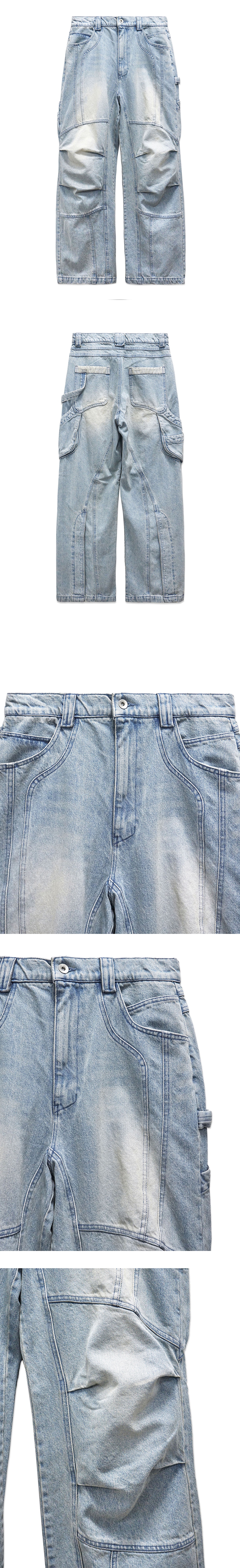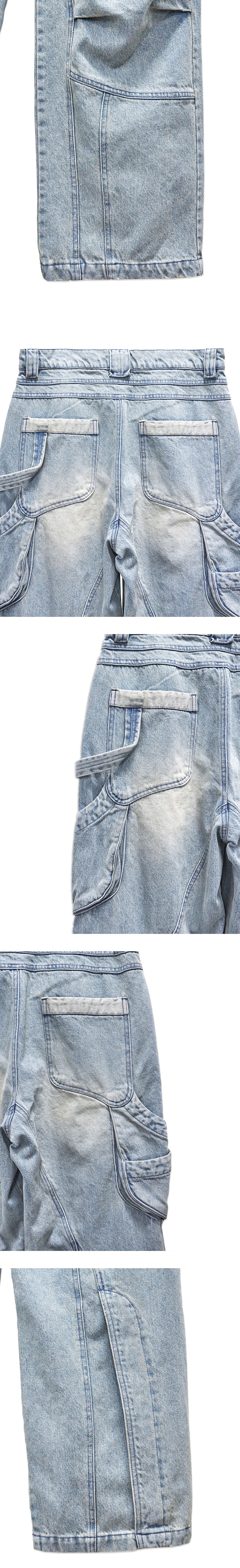 YKK 지퍼 무릎 핀턱 디테일 후면 힙 포켓 디테일 후면 툴 포켓 디테일 후면 해머 루프 디테일