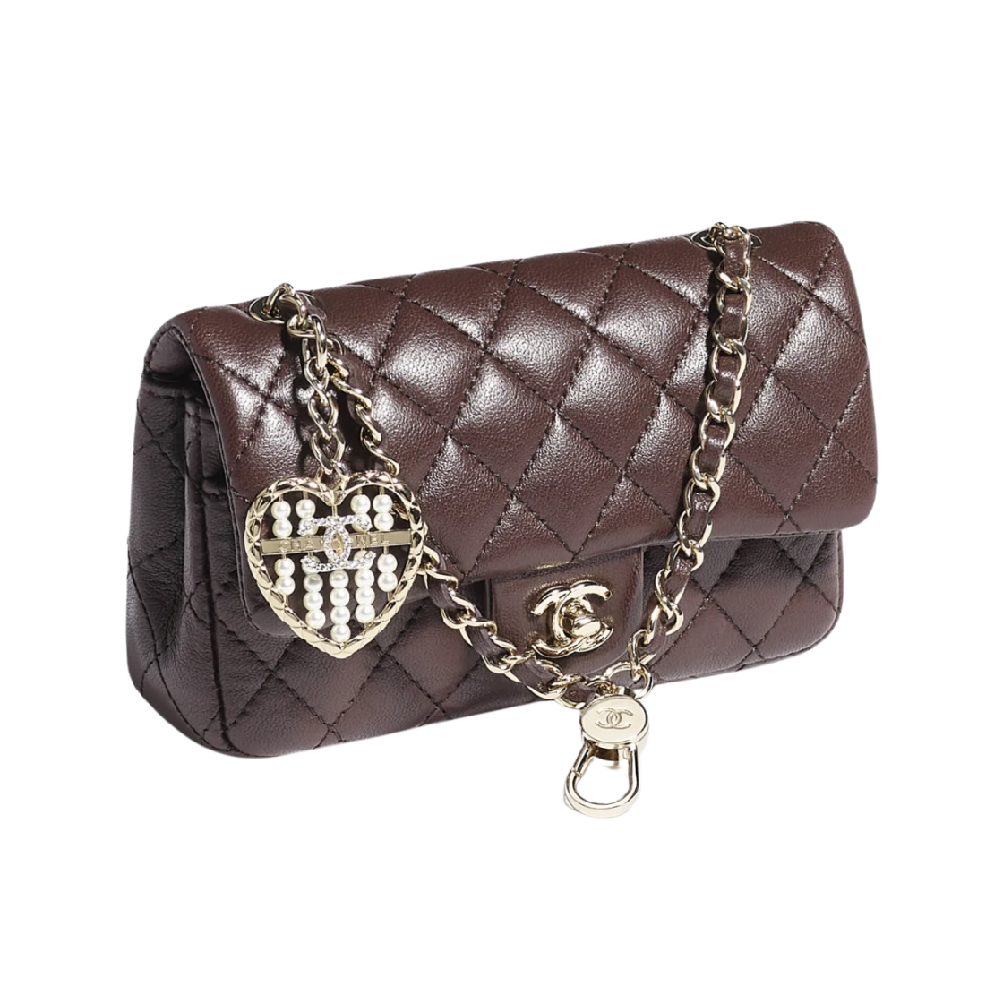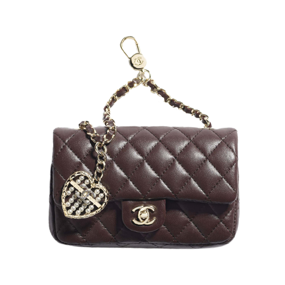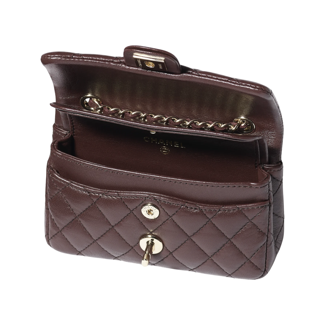 샤넬 클래식 후크 달린 미니백 램스킨 & 골드 메탈 다크 브라운