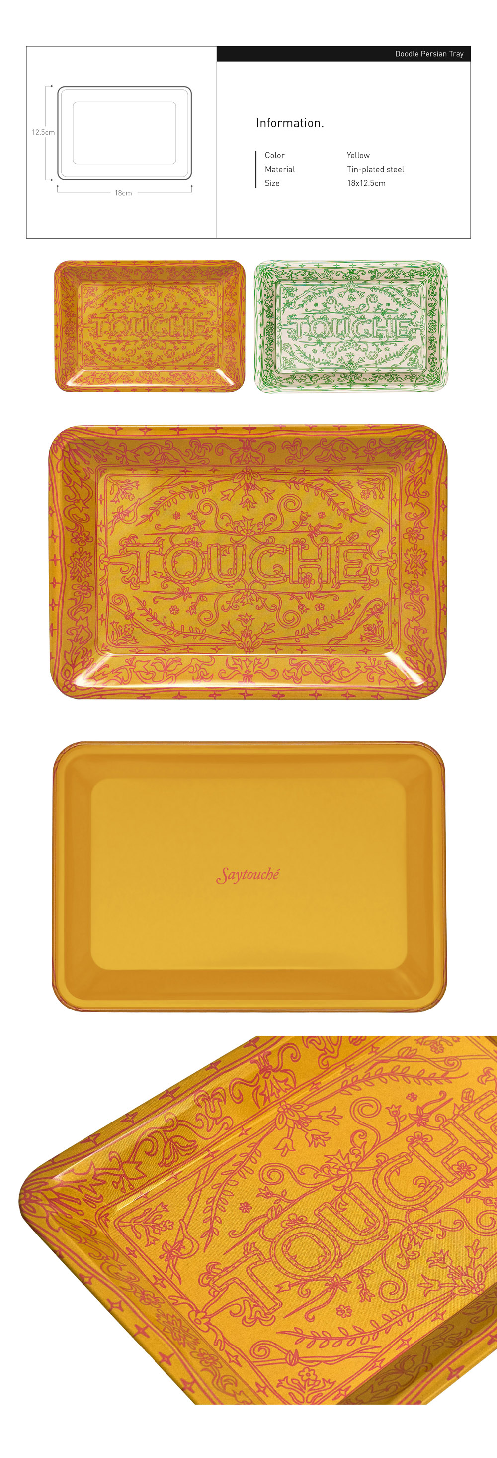 Say Touche Doodle Persian Tray Yellow