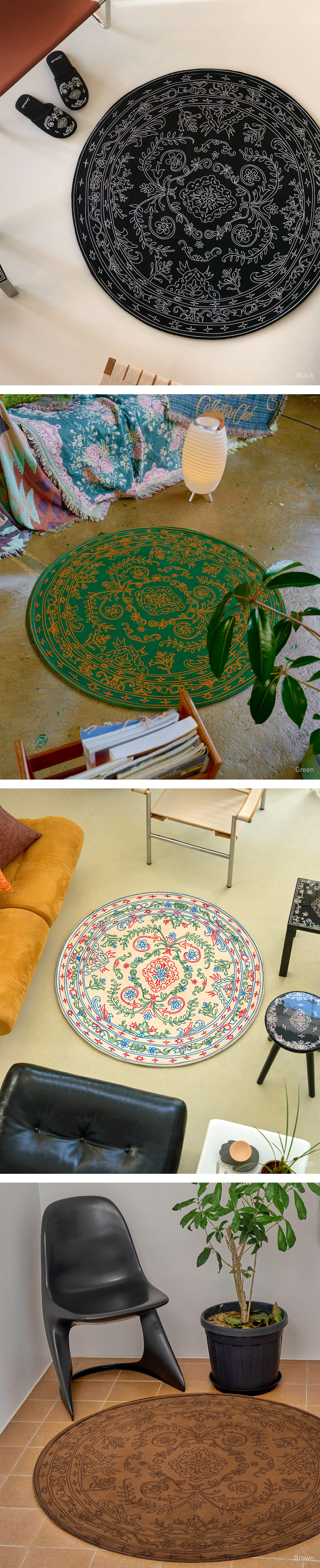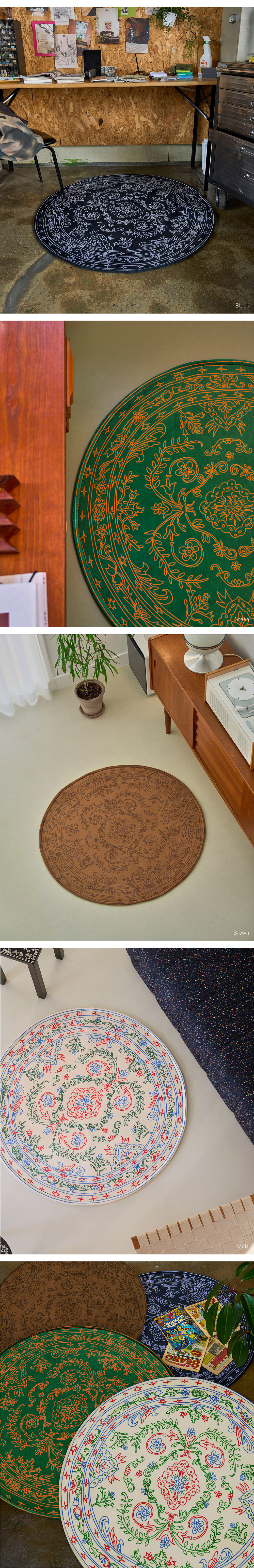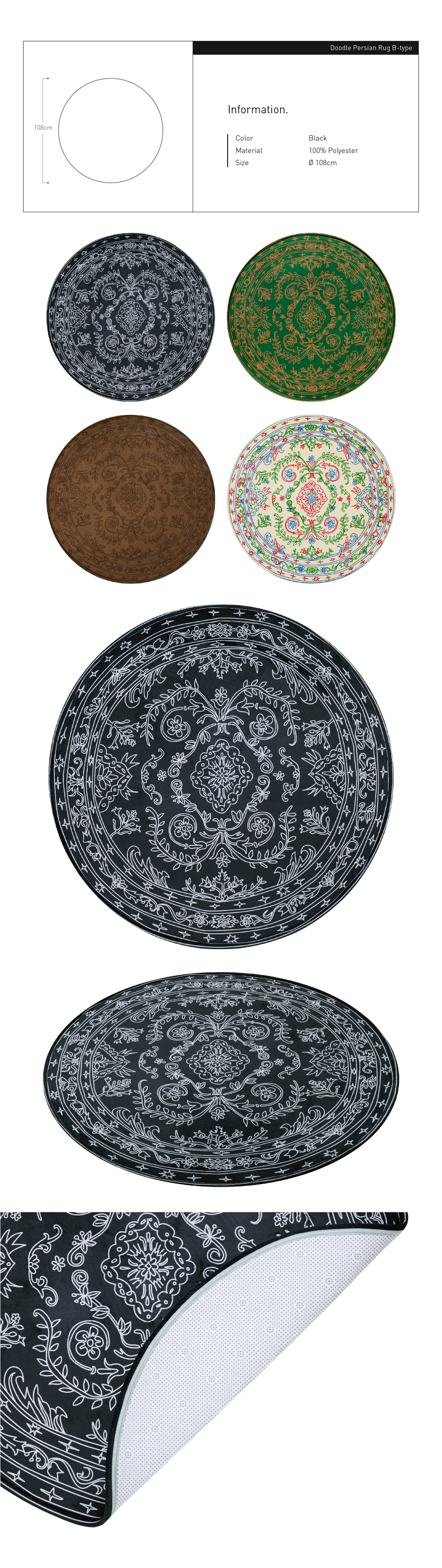 세이투셰 두들 페르시안 원형 러그 블랙