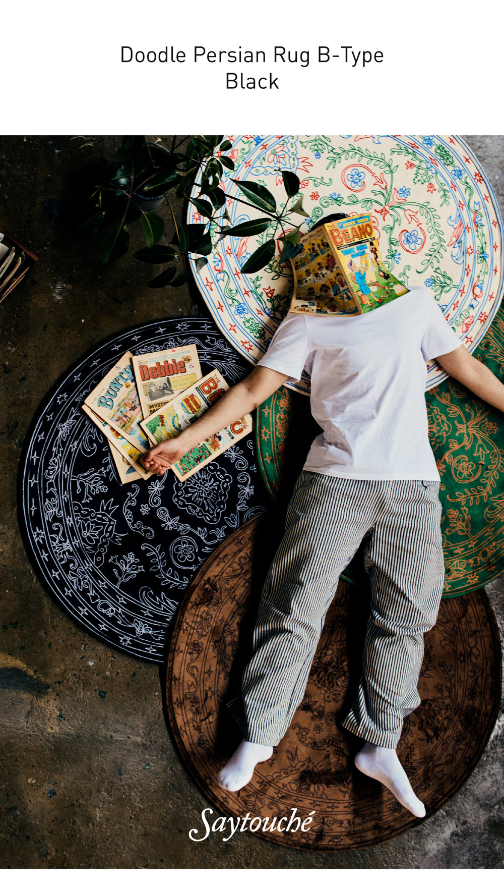 Say Touche Doodle Persian Rug B-type Black