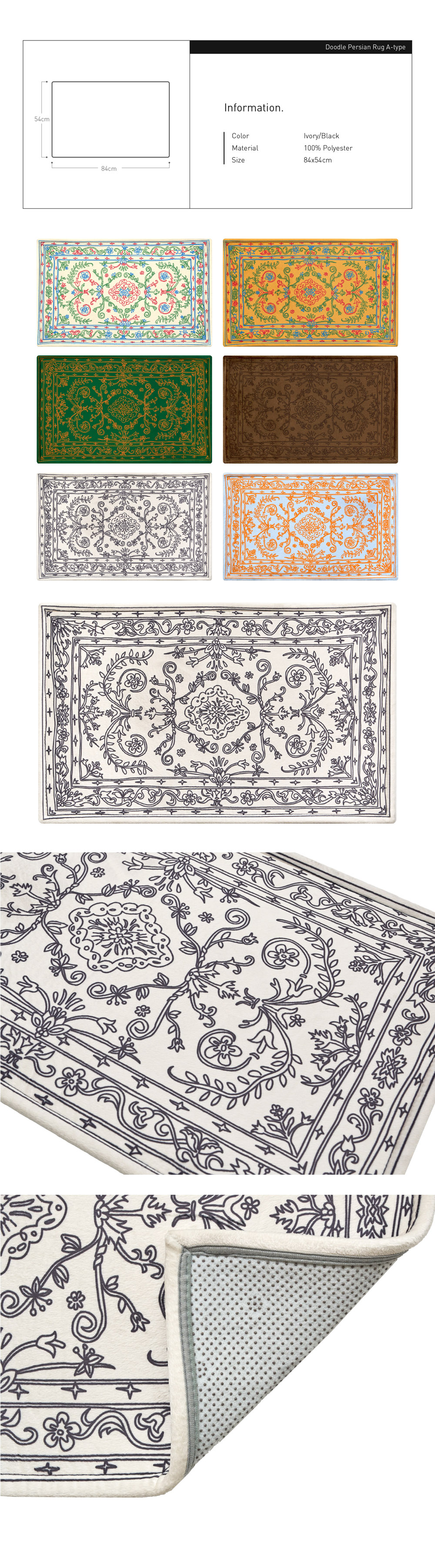 세이투셰 두들 페르시안 사각 러그 아이보리/블랙