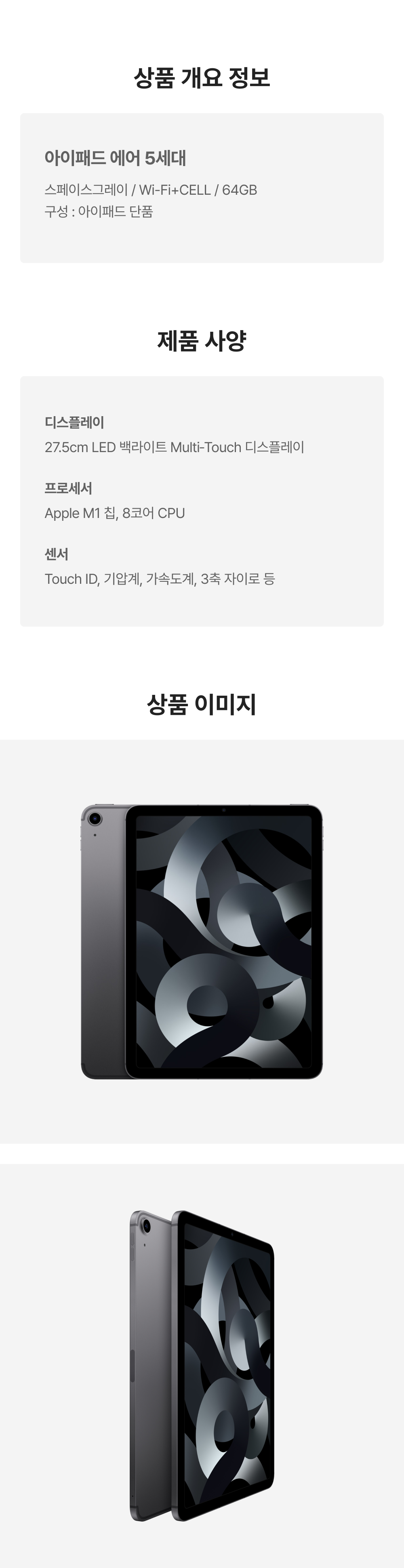 [B등급] 리퍼비시 아이패드 에어 5세대 wifi+cell Apple M1 64기가 스페이스그레이