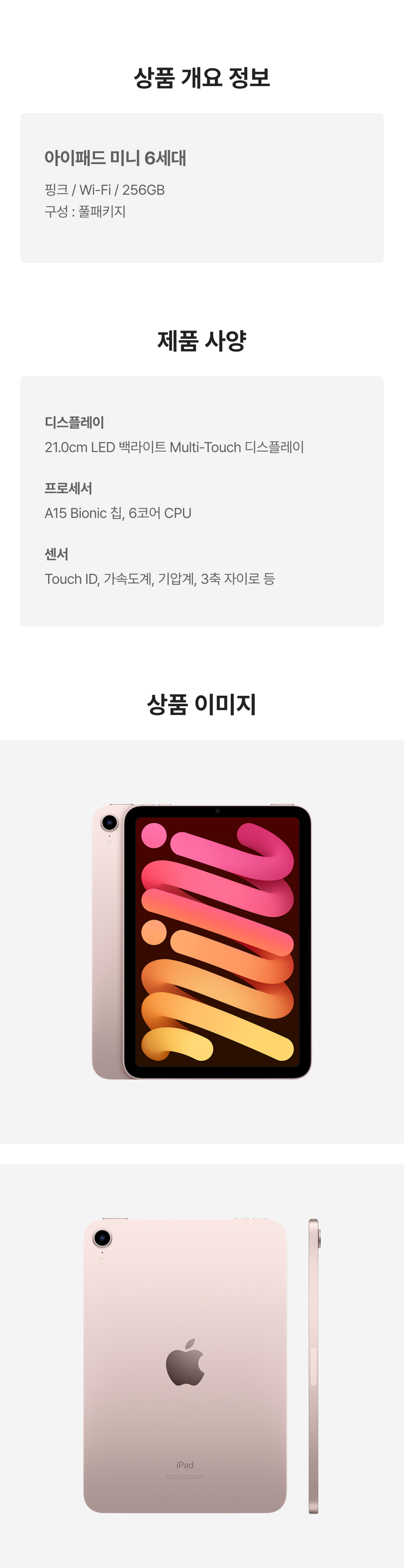[S등급] 리퍼비시 아이패드 미니 6세대 wifi A15 Bionic 256기가 핑크