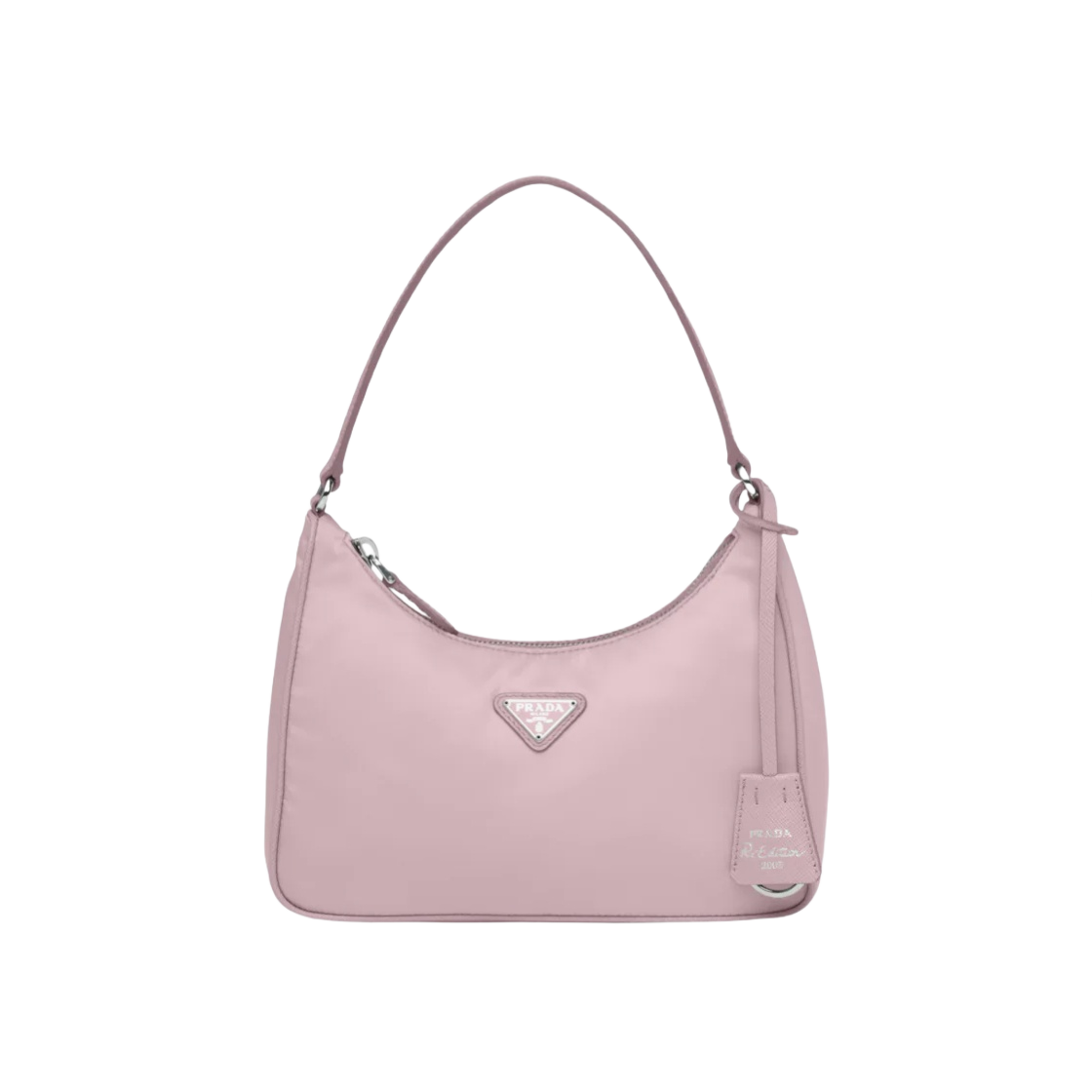 프라다 리에디션 2005 사피아노 트리밍 리나일론 미니 호보백 앨러배스터 핑크