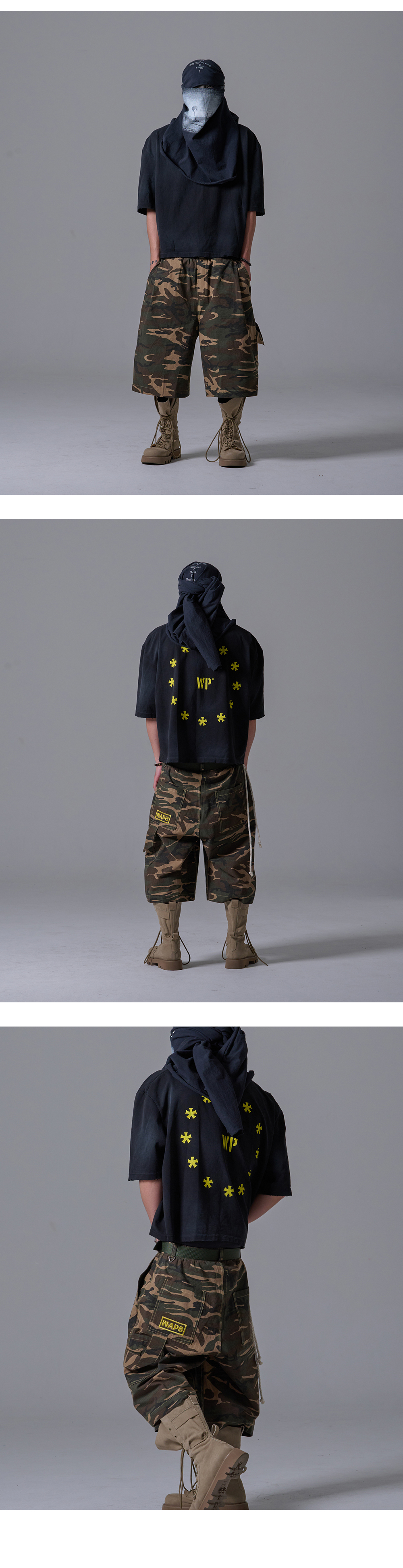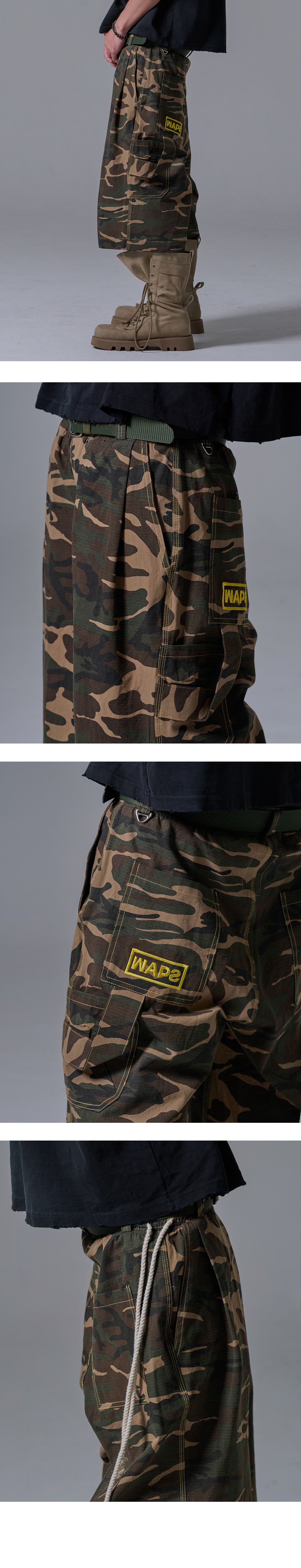 - 와이드, 적당한 기장의 편안한 착용감의 버뮤다팬츠 - 100% 코튼 립스탑 * SS - 뒷판 포켓 WAPS 자수 - 3줄 스티치로 견고하게 제작 - 허리 사이즈 조절 로프끈 , 벨트고리 D링 - 망치걸이 및 포켓