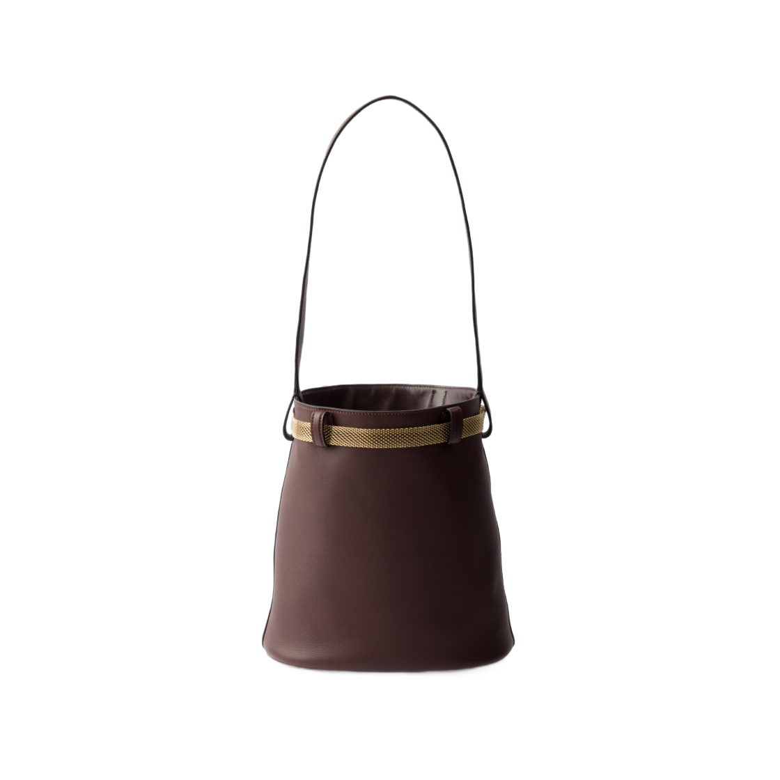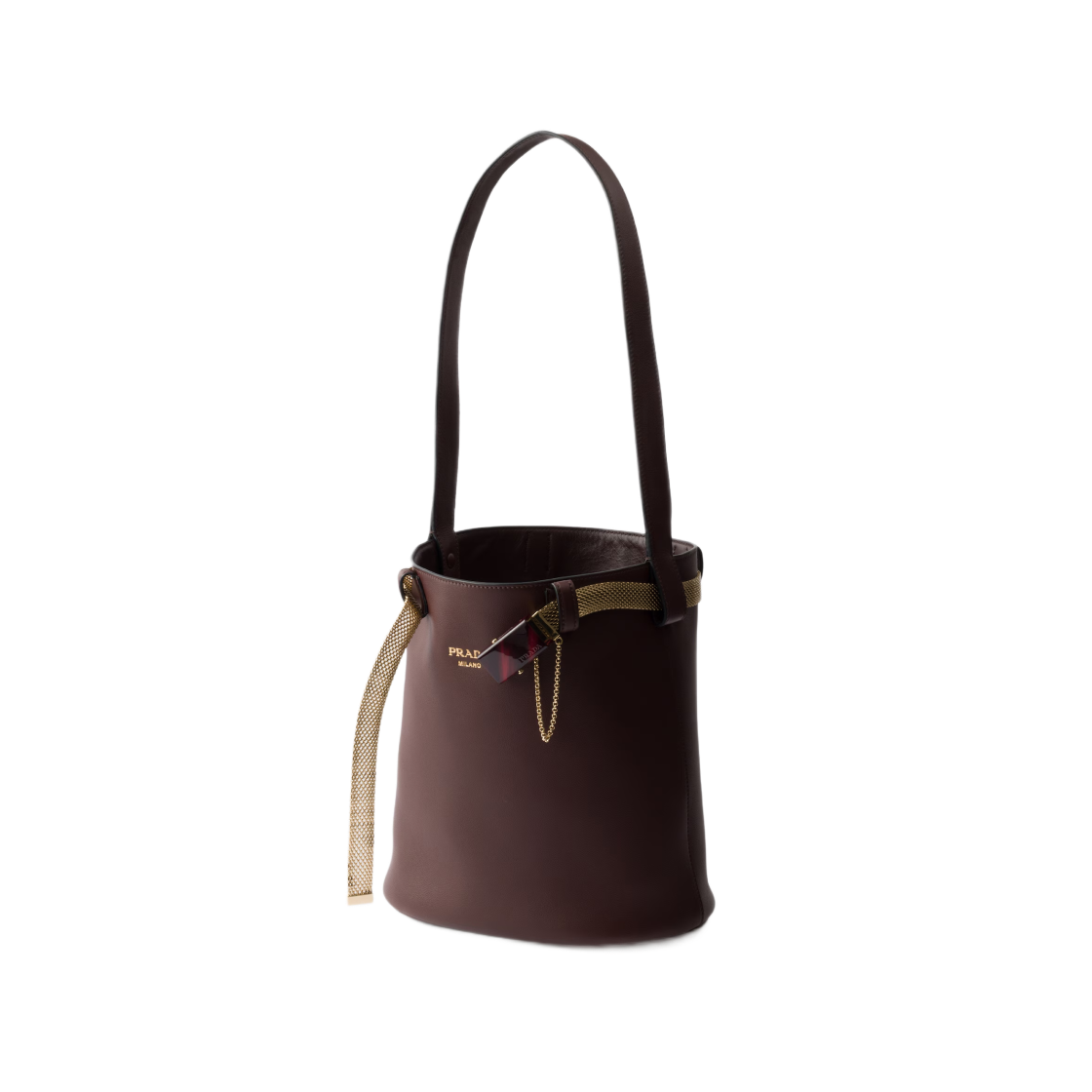 Prada Buckle Leather Bucket Bag with Jeweled Belt Briarwood
