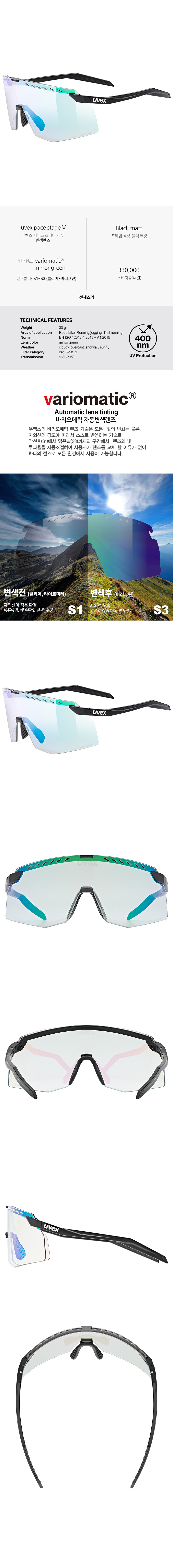 우벡스 페이스 스테이지 V 블랙 변색렌즈 그린
