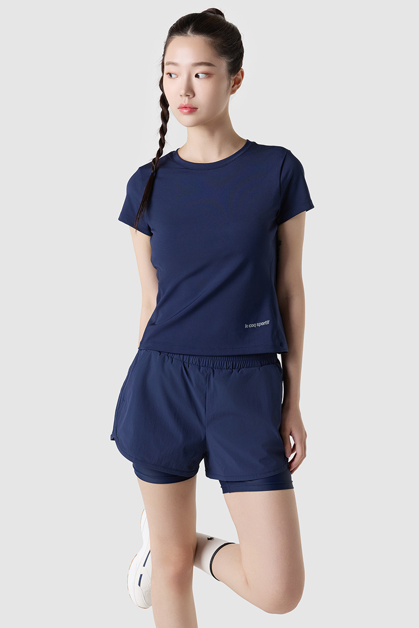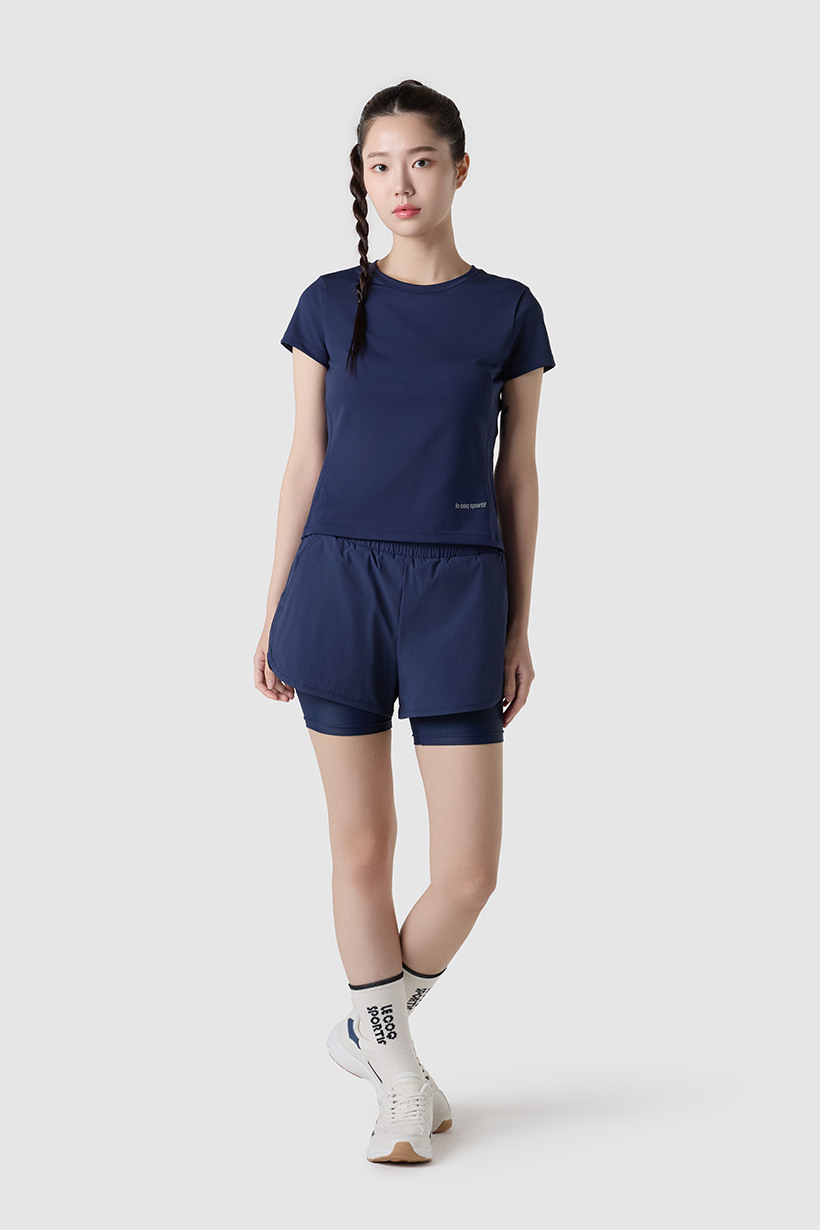 르꼬끄 스포르티브 여성 캡내장 슬림핏 반팔티셔츠 - 버터(QQ222ERS42)