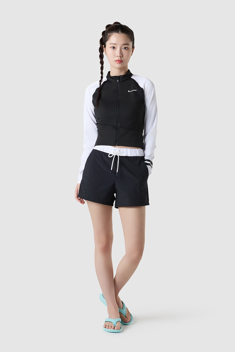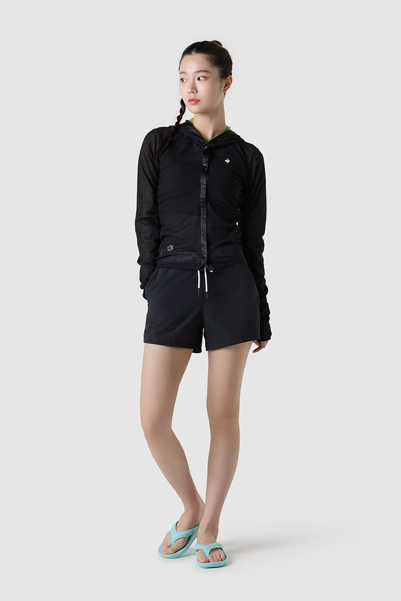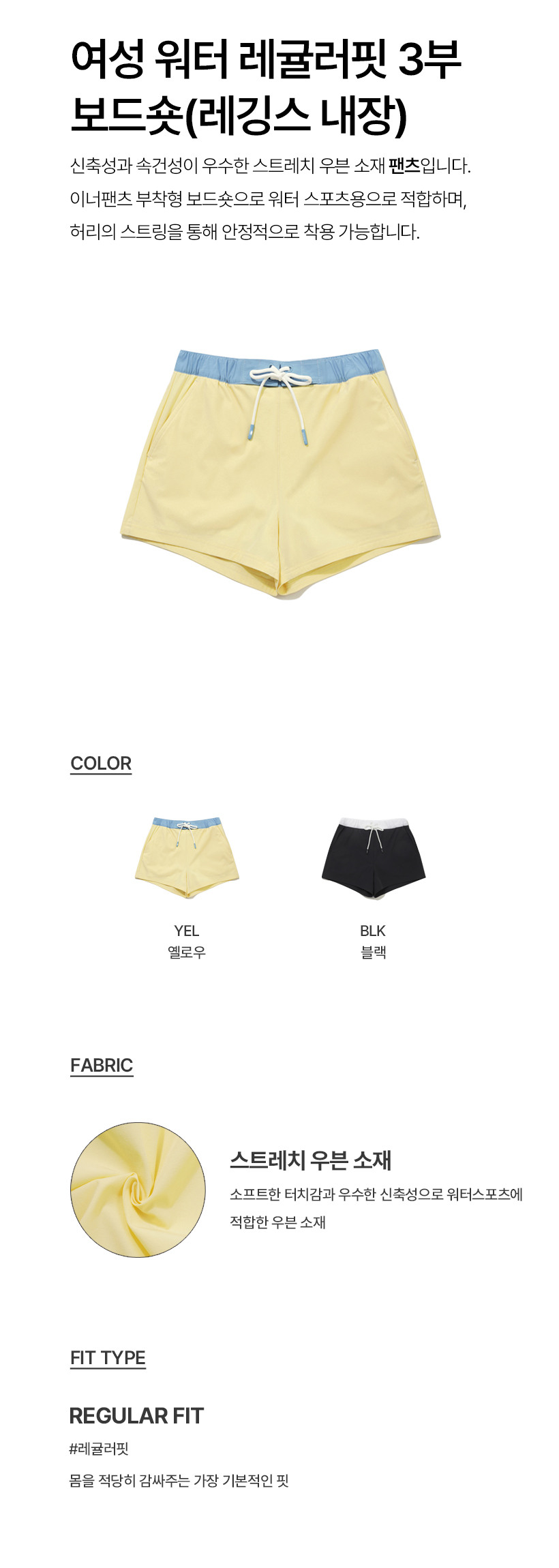 르꼬끄 스포르티브 여성 워터 레귤러핏 3부 보드숏(레깅스내장) - 블랙(QQ222SHP65)