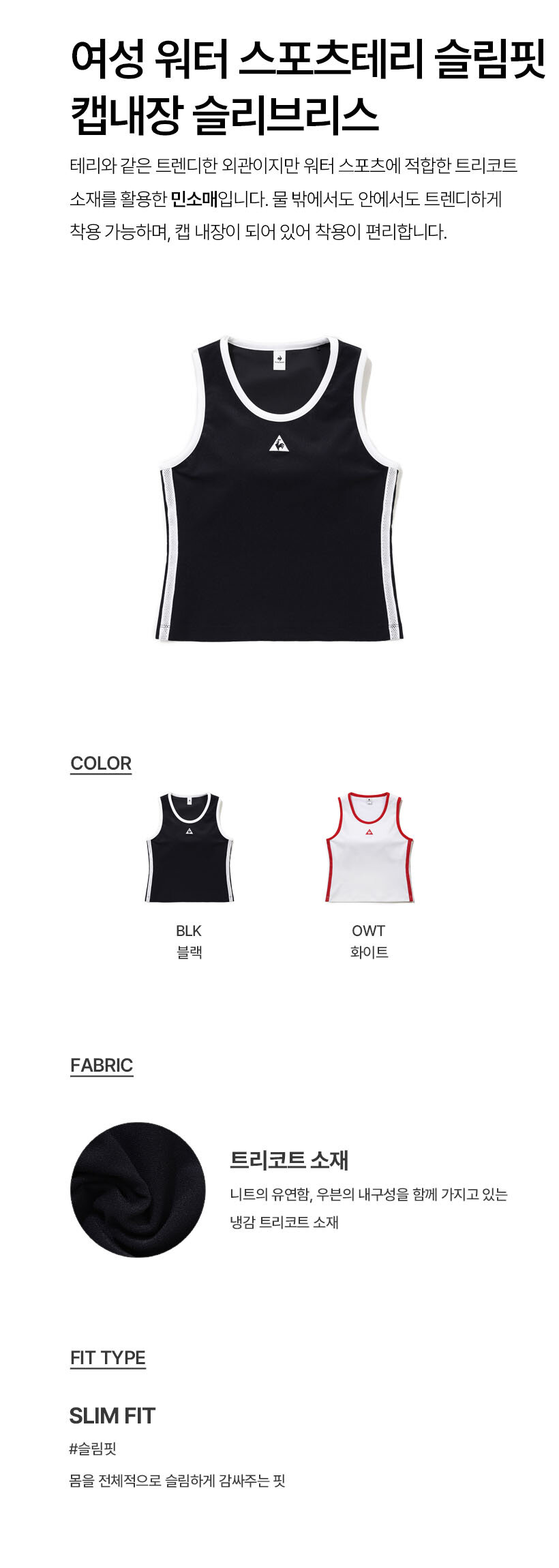 르꼬끄 스포르티브 여성 워터 스포츠테리 슬림핏 캡내장 슬리브리스 - 블랙(QQ222SSL66)