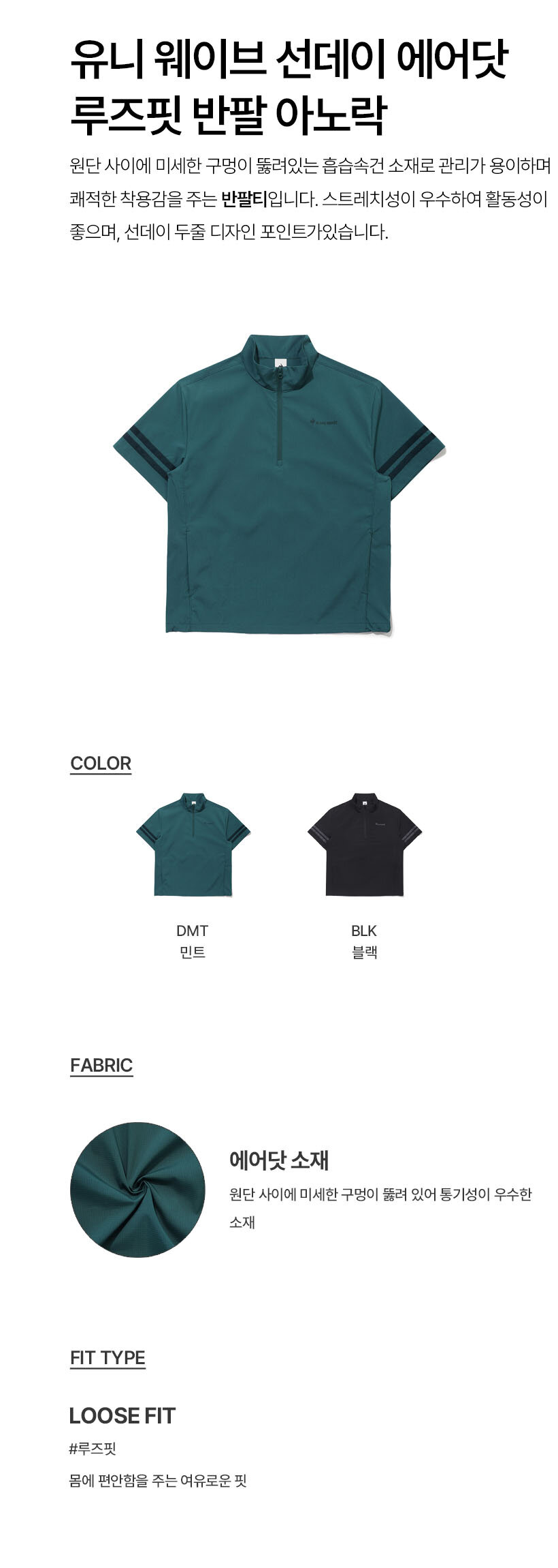 르꼬끄 스포르티브 유니 웨이브 선데이 에어닷 루즈핏 반팔 아노락 - 민트(QQ223SJK63)