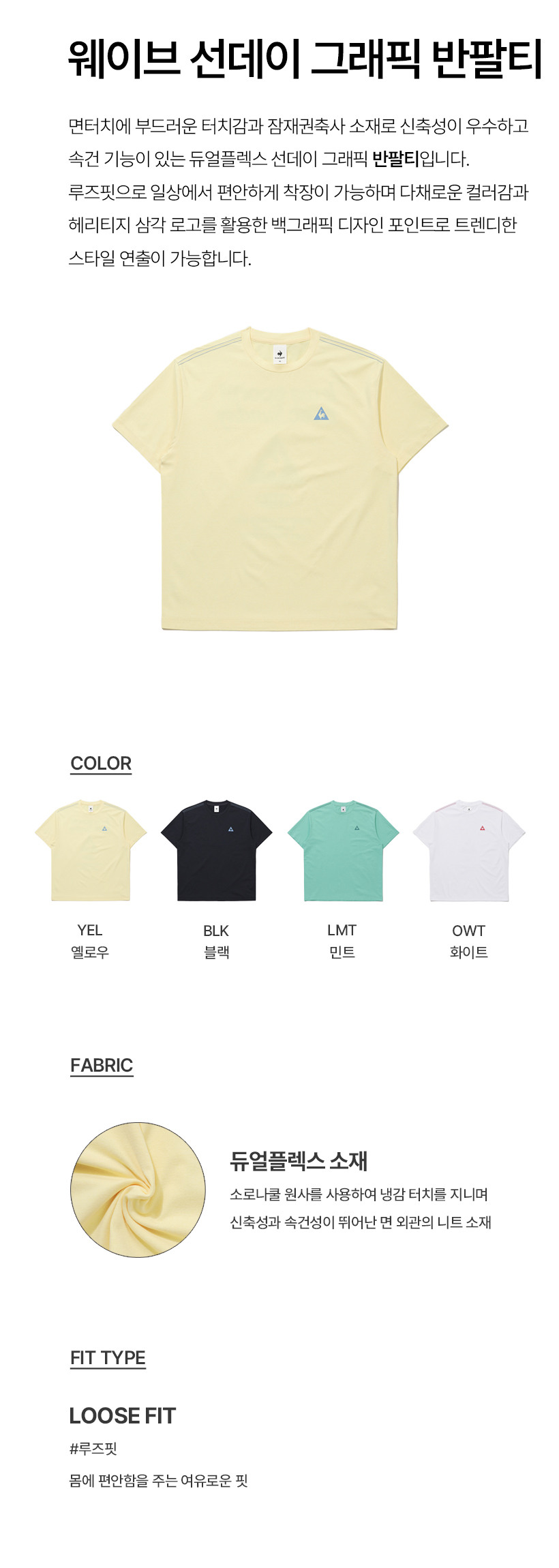 르꼬끄 스포르티브 유니 웨이브 선데이 루즈핏 반팔 티셔츠 - 화이트(QQ223SRS61)