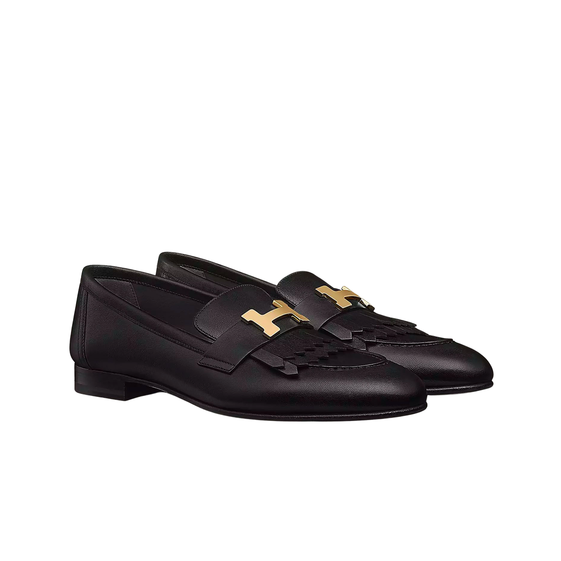 (W) Hermes Royal Loafers Goatskin & Permabrass Noir