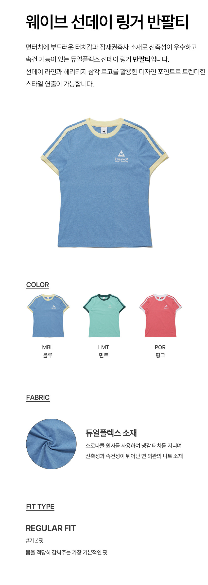 르꼬끄 스포르티브 유니 웨이브 선데이 래귤러핏 링거 반팔 티셔츠 - 블루(QQ223SRS62)
